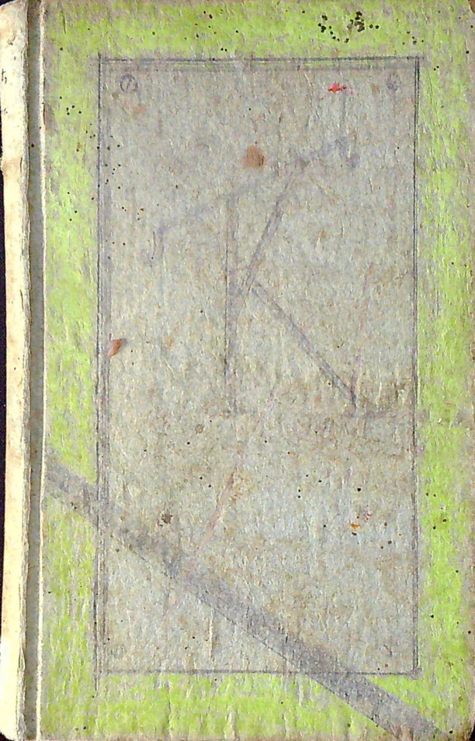 Dobová kartonová vazba, zaprášená a ohmataná. Na straně 103 (chybně paginované 203) a na straně 105 při spodním okraji kresby zelenou tužkou s vyobrazením profilu mužské hlavy.