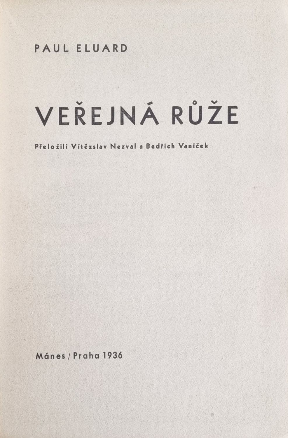Přeložili Vítězslav Nezval a Bedřich Vaníček, vytiskla knihtiskárna Československý kompas. Původní obálka, na zadní její straně při vnějším spodním okraji natržená, knižní blok neoříznutý.