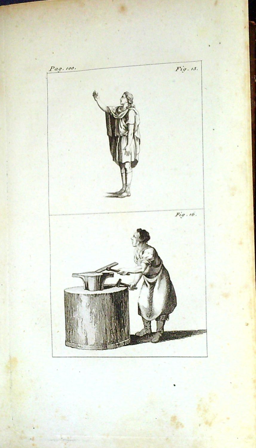 Dobová vazba s kartonovými deskami potaženými mramorovaným papírem, kožený hřbet a nárožnice, ve hřbetu ve druhém poli původní kožený štítek s tlačeným názvem, ve čtvrtém poli původní kožený štítek s tlačeným vyznačením dílu, v ostatních polích tlačené a zlacené ornamenty, barvené svrchní ořízky. V prvém dílu chybí 1 tabule (obr. číslované 28 a 29), ve druhém 2 tabule (obr. 49-52). Ve druhém dílu při vnějším okraji sedmi tabulí světlé mapy způsobené vlhkostí. Na předních předsádkách podpisy tužkou Jiřího Šalamouna.