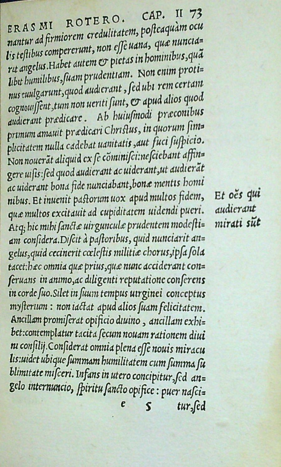 Živá záhlaví, tištěné poznámky po stranách, tučně tištěné versálky ve výši 2-3 řádků, vstupní konturová iniciála v jednoduchém rámečku na rostlinném pozadí zalomená do výše 11 řádků. První vydání vyšlo téhož roku v Basileji u Frobena. - Chybí titulní list.