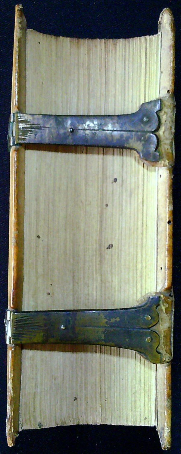 Dobová renesanční vazba s dřevěnými deskami potaženými světlou vepřovicí zdobenou slepotiskem, ve hřbetu tři vazy, v prvním a druhém poli perem psaný název, na přední desce dva původní kovové úchyty, na desce zadní dvě kožené přezky s původními kovovými, tepanými přezkami. Na přední desce vazby uprostřed horního okraje perem poznamenáno jméno evangelisty Lukáše. Vazba lehce ohmataná a na zadní desce mírně zašpiněná, slepotisk zčásti vyšepsovaný, na zadní desce v délce cca 3 cm zářez (pravděpodobně od nože). Na prvních 63 foliích prvého titulu při vnějším spodním okraji světle hnědé stopy způsobené vlhkostí. Od folia 150 až do konce u druhého titulu velmi drobné dírky od červotoče (zpočátku jedna, na samém konci šest). Přes popsané závady ve stavu dobrém.