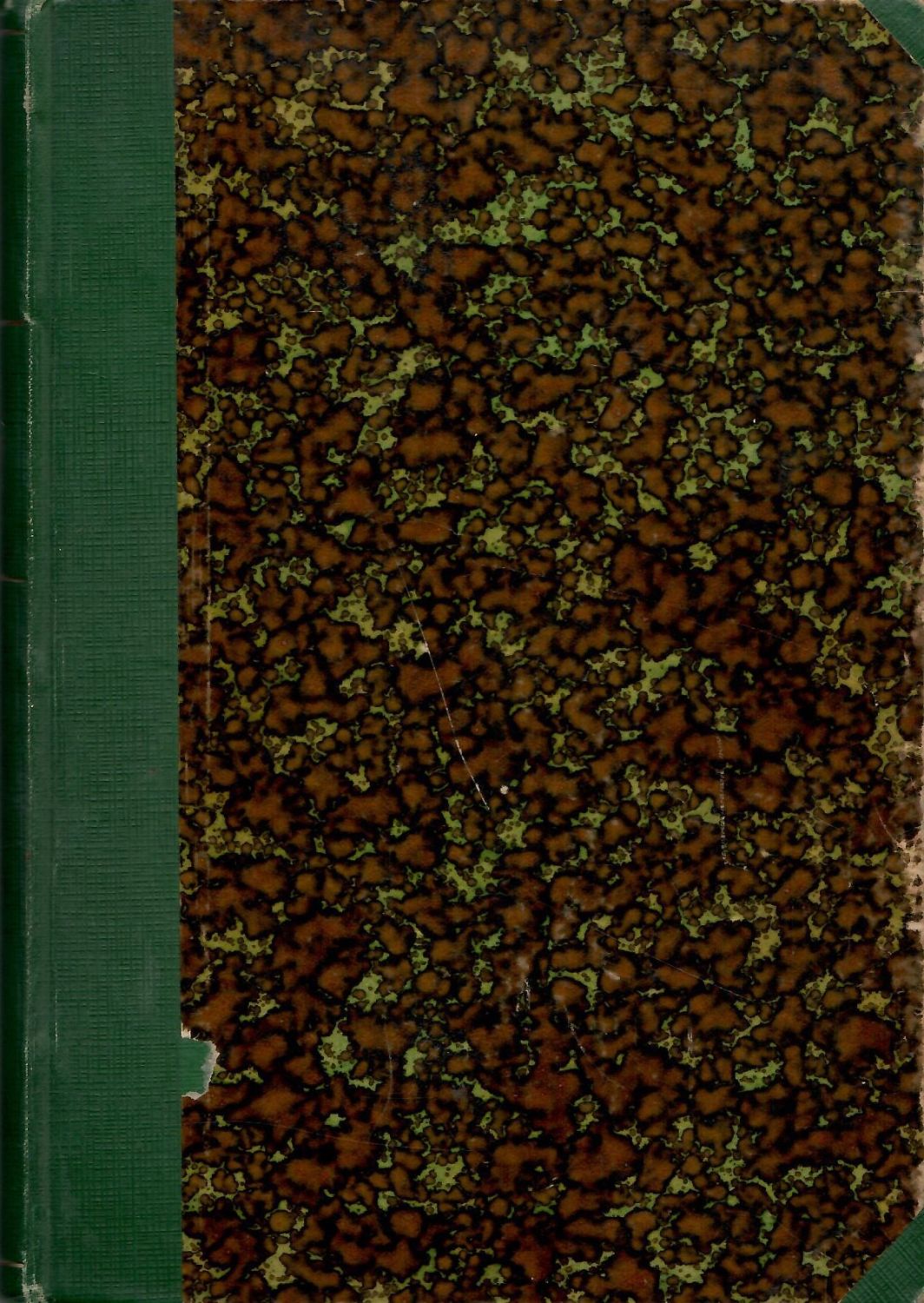 Zelený plátěný hřbet a nárožnice, na hřbetě zlac. věcný název a linky, mramor. ořízka; hrany odřené, listy čisté.