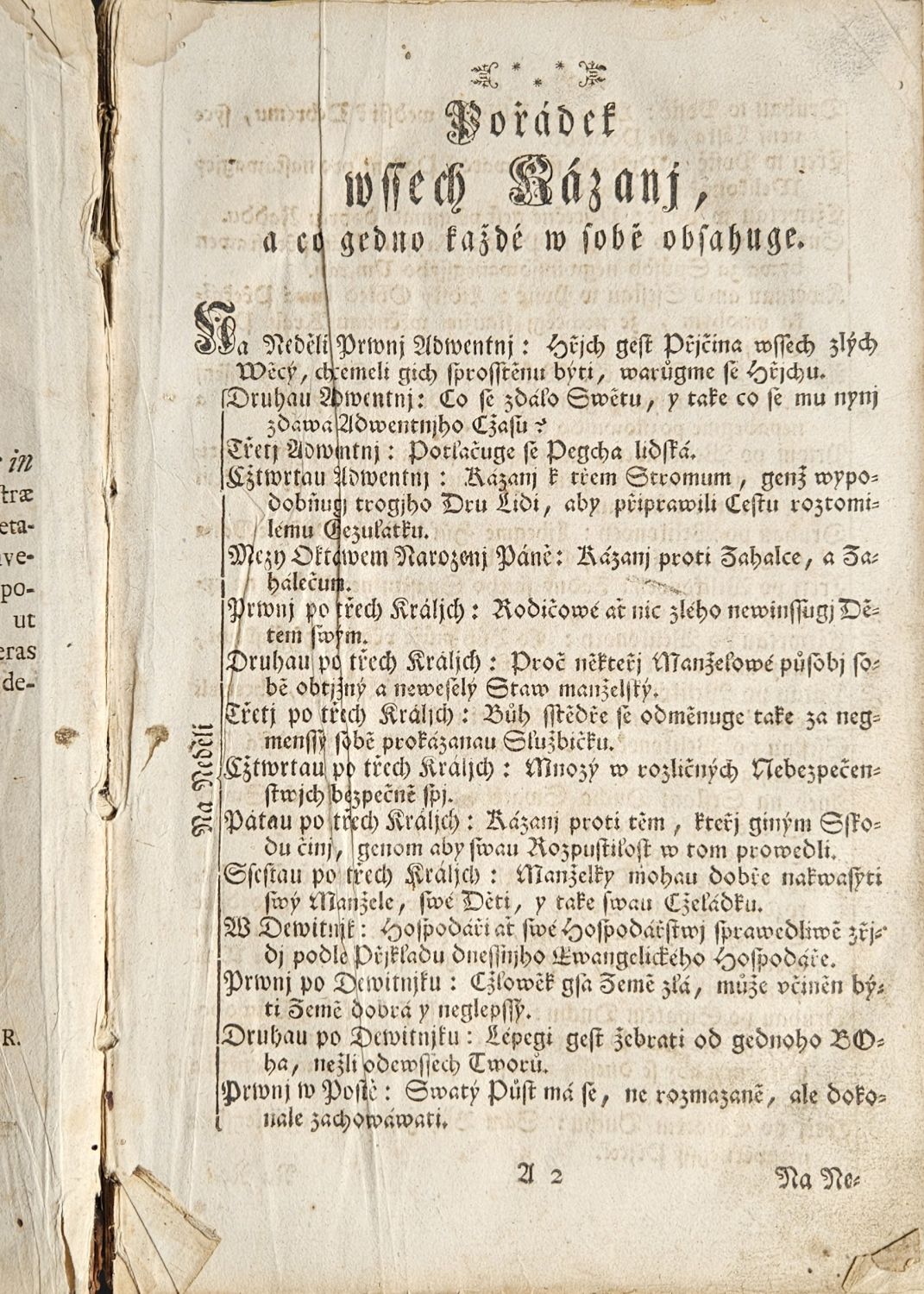 Mrawná Navčenj Na Wssecky Wegročnj Neděle, Na Den Poswěcenj Chrámu Páně wydaná od Kněze Leopolda FABRITIUS ..... Kniha Prwnj Léta Páně 1761ho.