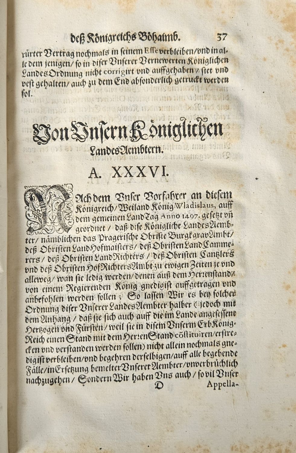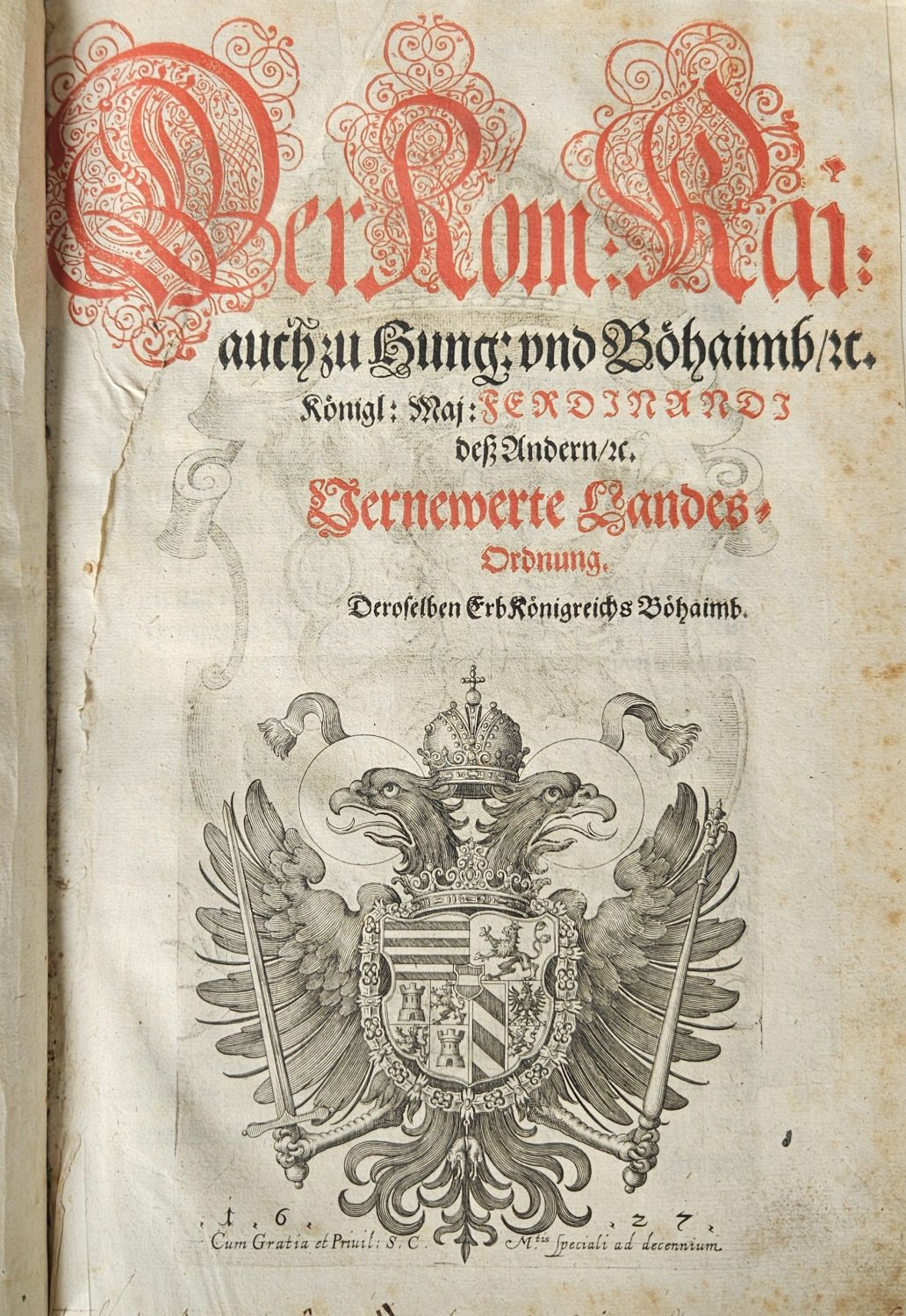 Der Rom: Kai: auch zu Hung: vnd Böhaimb/ etc. Königl: Maj: FERDJNANDJ dess Andern/ etc. Vernewerte Landes=Ordnung. Deroselben Erb Königreichs Böhaimb.