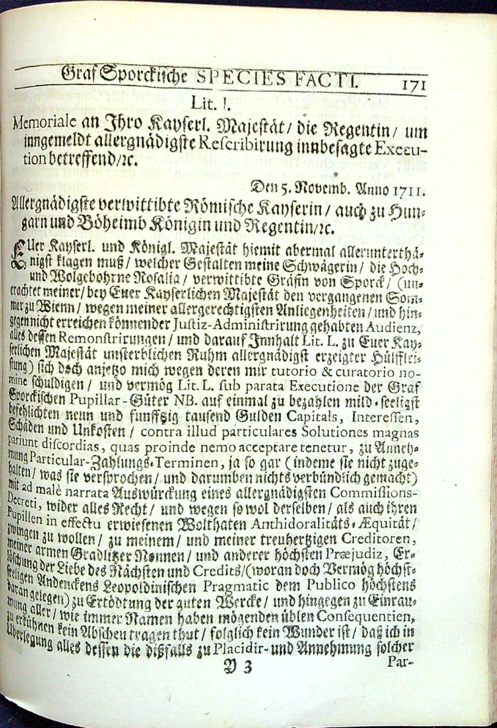 Nová vazba z mramorovaného papíru, stříkané ořízky. Na tit. listu starý proven. záznam "Bibliotheca" a začerněné jméno knihovny, na několika listech při spodním vnějším okraji světle hnědé mapy od vlhkosti, jinak ve stavu dobrém. Pravděpodobně chybí front. s portrétem hraběte Šporka. Druhé vydání knihy značně přepracované a rozšířené vyšlo roku 1720 v Norimberku.