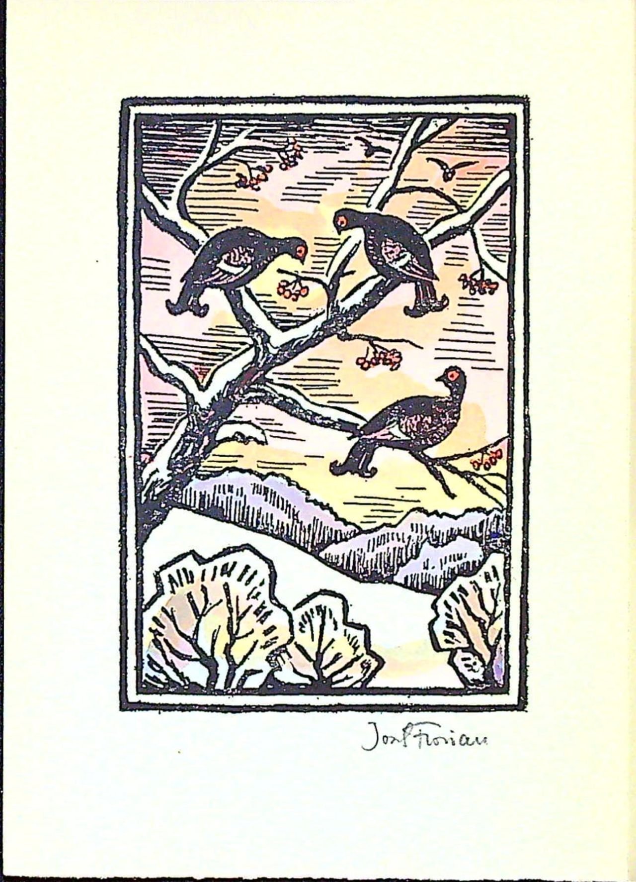 Ilustrace:Josef Florian kolorovaný linoryt ve frontispisu autorem vpravo pod deskou tužkou podepsaný, na tit. listu kolor. viněta, stejná nekolor. na přední straně obálky.