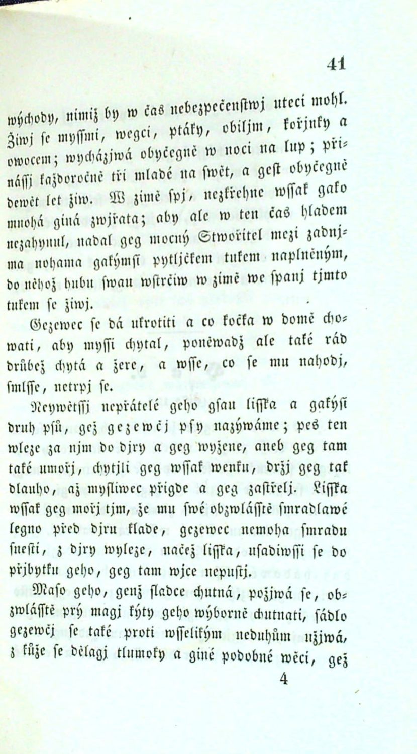 Gotika, za úvodním slovem drobná tiskařská ozdůbka, tučně tištěné nadpisy kapitol, za textem na 4 listech 25 ocelorytinových vyobrazení (z toho 23 zcela či částečně dobově ručně kolorovaných).