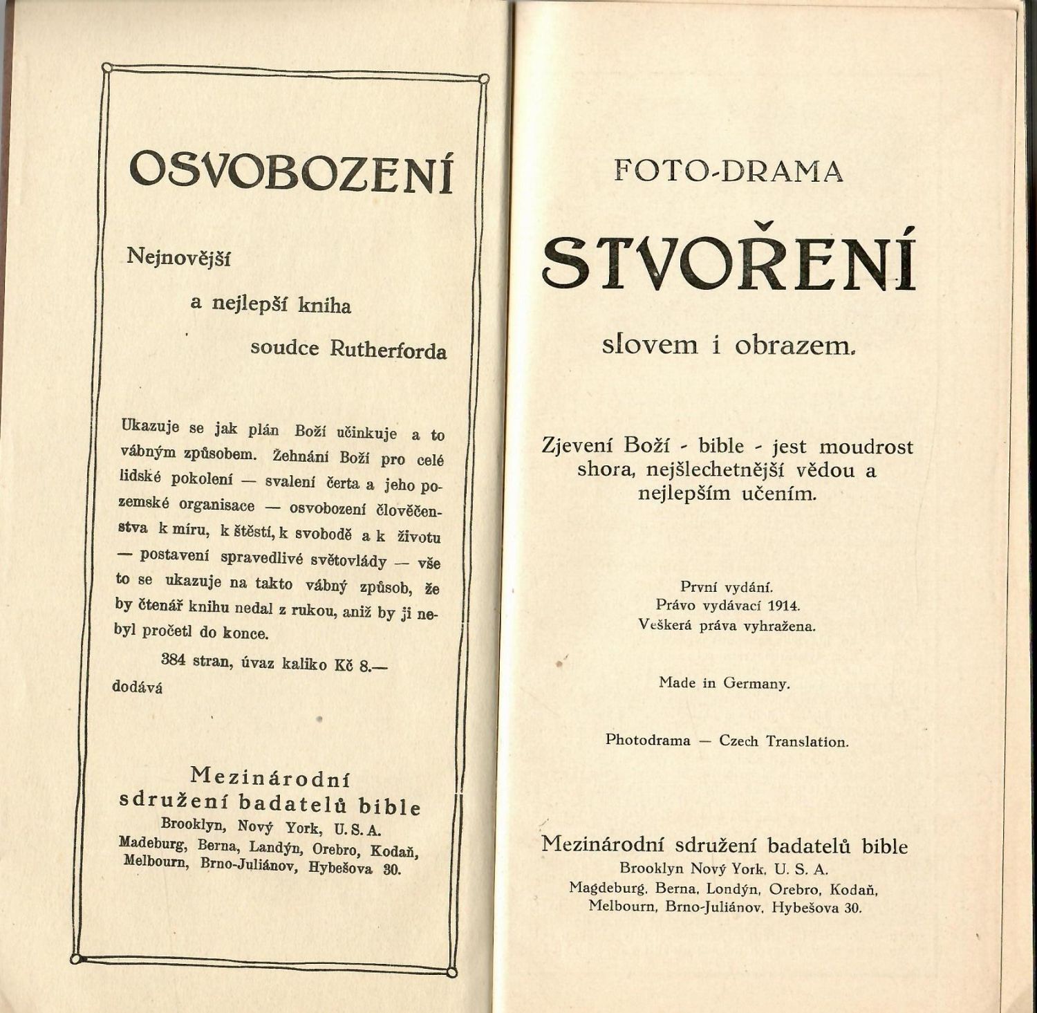 Papírové desky ošoupané a vybledlé, na přední desce tlačený a zlacený věcný název. Desky i listy při pravém spodním okraji zmáčknuty, "oslí" rohy.