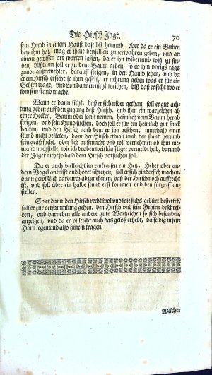 Neu Jägerbuch: Jacoben von Fouilloux, einer fürnehmen Adelsperson in Franckreich aus Gastine in Poitou. Darinn gründlich beschrieben und zu finden, Vom Jäger, der Jagten anfang, des Jägers Horn und Stimm, wie er sich deren auff der Jagt, recht gebrauchen, und artige Hifft Blasen soll, und was zu jedem sonst besonderes mehr erfordert wird. Auch von Laid, Jag, Hetz und allerley Hunden, ihrer art und herko[m]men, Welcher gestalt und zeit, sie zubelegen, Welffen sollen, von der Wuot, Raud und andern zufällen, zu retten, und zuverwaren, wie sie auff allerhand Wildpreth, und zum Horn, anzubringen, zu arbeiten, mit hoher verrer Nasen verfahen, die fährt einfallen, beharren, verfallen, und auff der Jagt fürzulegen, zu Passen, zupfneyschen, etc. Item von der Hirsch, Schweins, Hasen, Fuchs und Dachs Jagt, das ist von .....,.