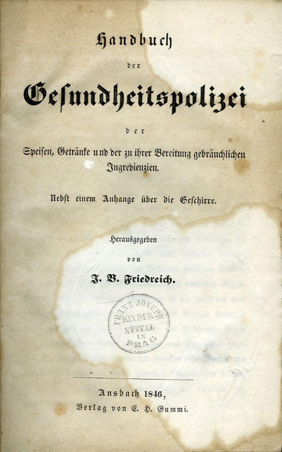 Handbuch der Gesundheitspolizei der Speisen, Getränke und der zu ihrer Bereitung gebräuchlichen Ingredienzien. Nebst einem Anhange über die Geschirre. Herasugegeben von ...