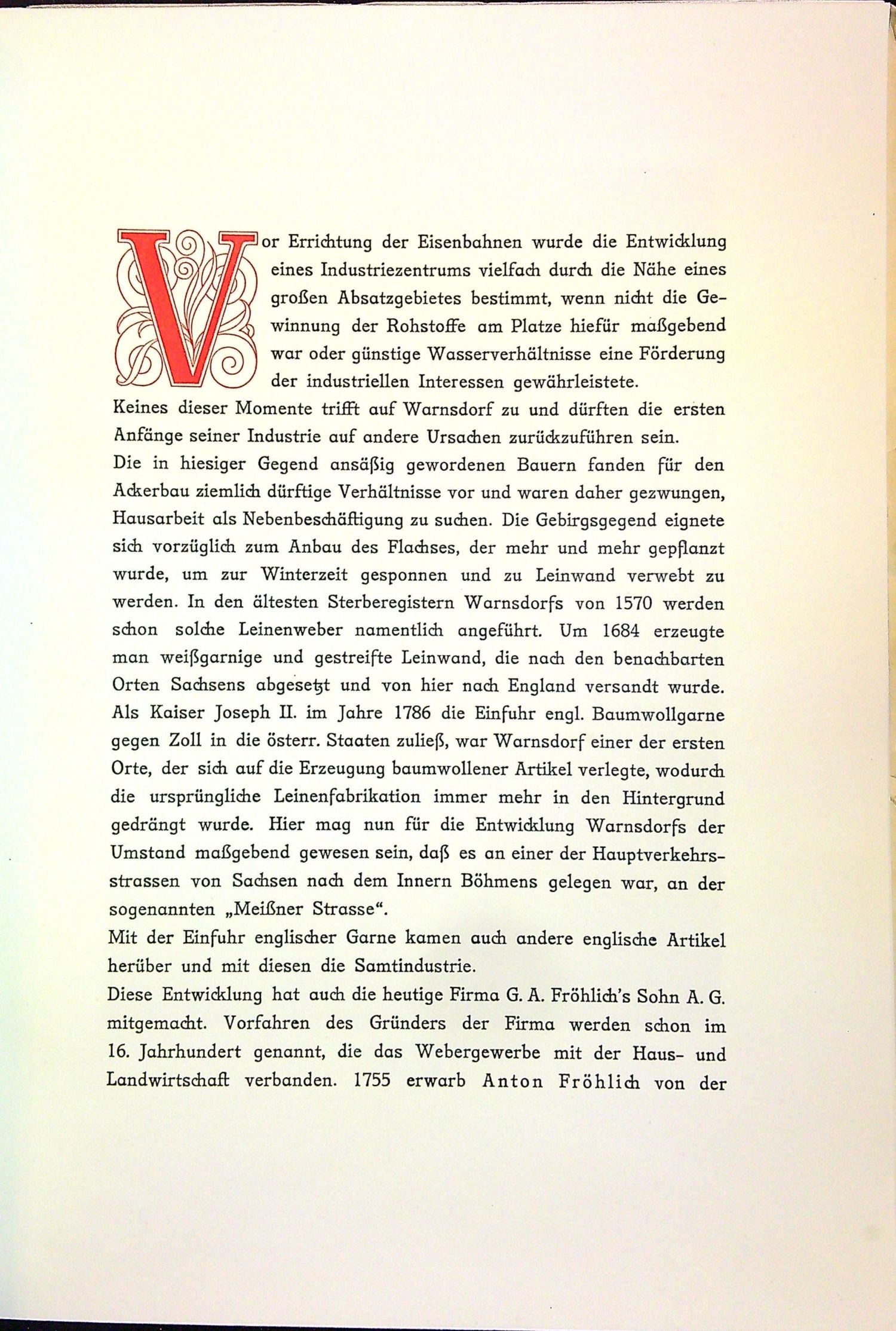 G. A. Fröhlichs Sohn A.G. Warnsdorf ČSR. 1777 - 1927.