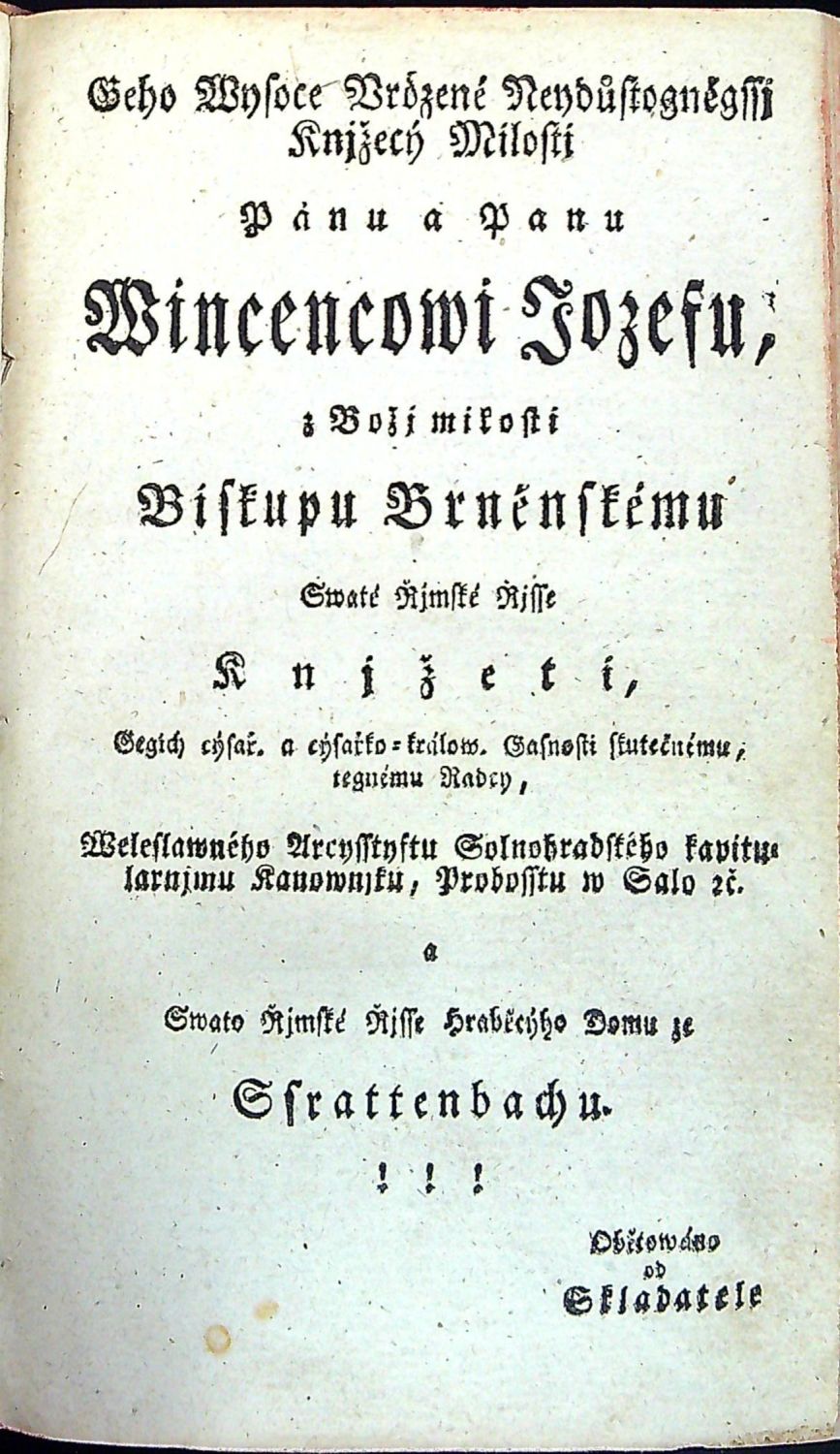 Katolický Kancyonál, k wzdělánj a roznjcenj skutečné, weřegné y domácý křestianské pobožnosti. Obsahugicý rozličné pjsně rannj a wečernj na každý den - při wssech skutcých dennjch - k weřegným službam Božjm w Neděli, ke mssi swaté, požehnánj - k odpolednj pobožnosti, Litanye, Nesspory etc. gakož y ke mssi swaté na den wssednj celého týhodnu; ......