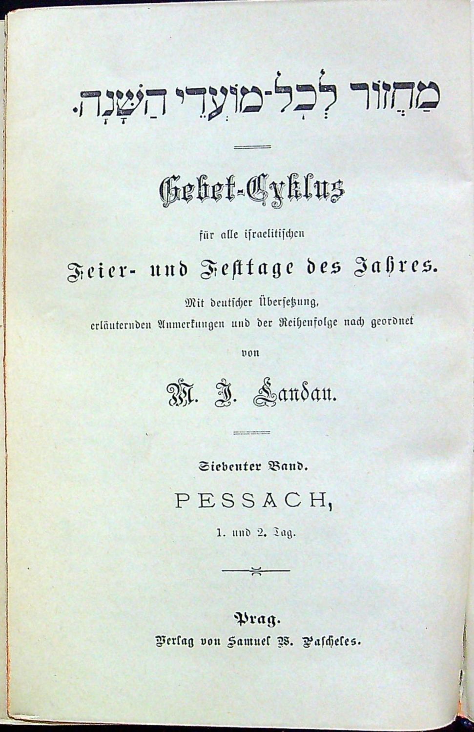 Gebet-Cyklus für alle israelitischen Feier - und Festtage des Jahres. Mit deutscher Übersetzung, erläuterndewn Anmerkungen und der Reihenfolge nach geordnet von M. J. Landau. 7. Band (Pessach 1.+2. Tag), 8. Band (Pessach 7.+8. Tag))