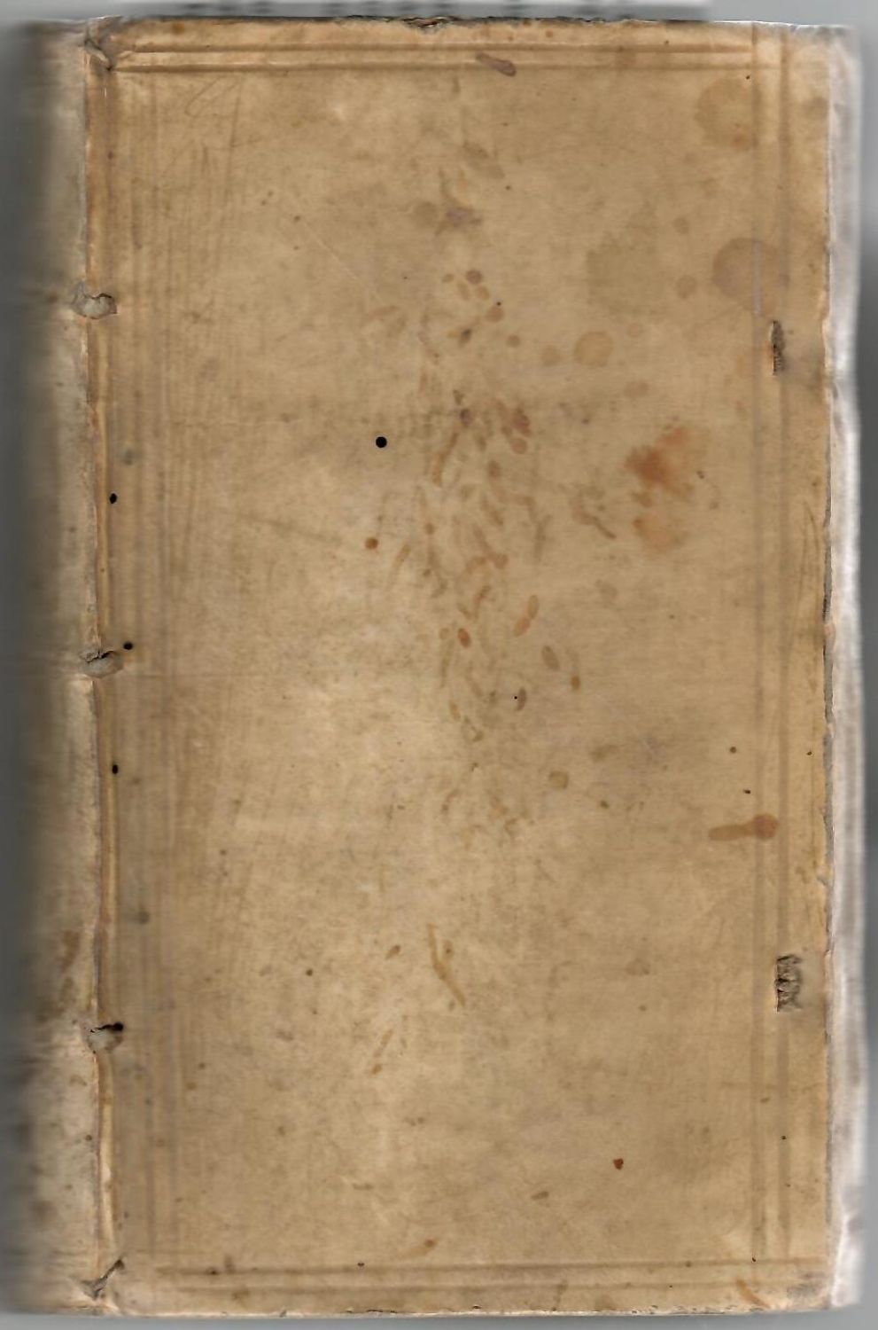 Dobová pergamenová vazba, na obou deskách při okraji tlačený rám z dvou jednoduchých linek, ve hřbetu tři vazy. Vazba ohmataná a místy zašpiněná, na tit. listu nečitelné jméno jednoho z předchozích vlastníků knihy.