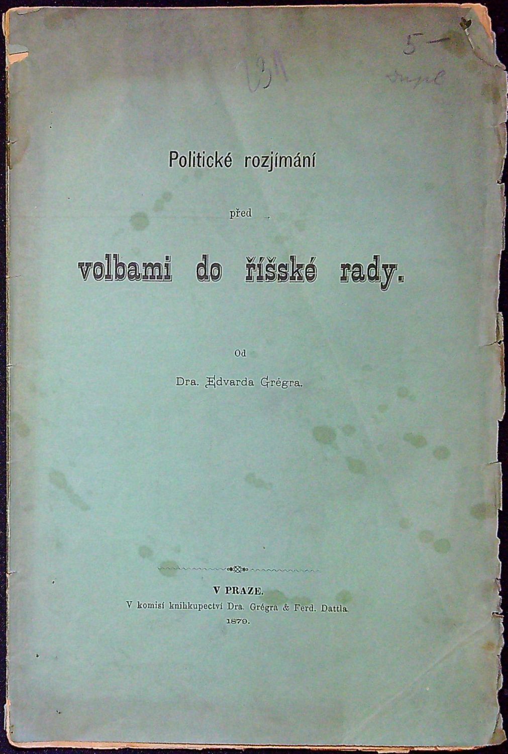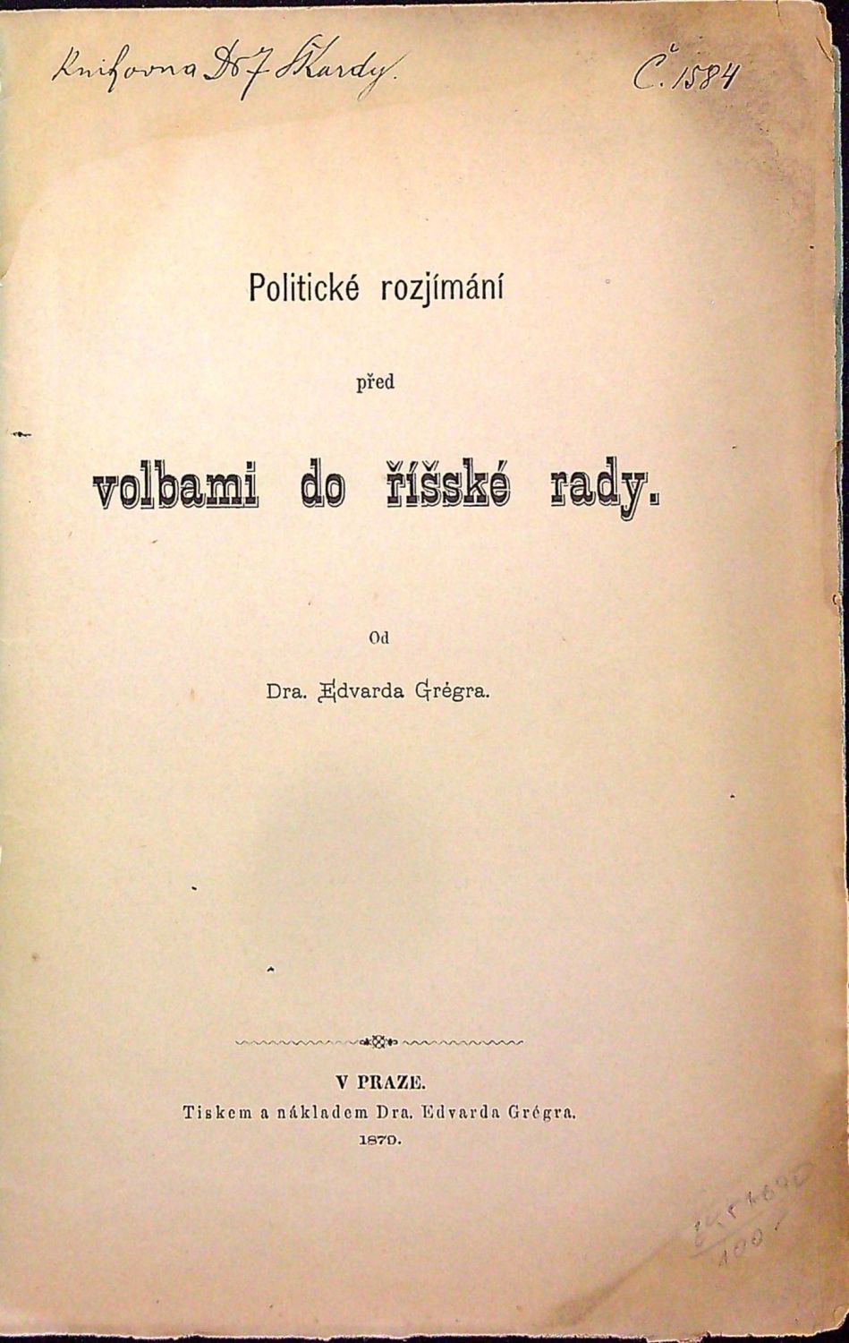 Původní zelená pap. obálka, lehce zašpiněná a na přední straně přeložená a při vnějším okraji potrhaná. Na tit. listu vlastnický přípis perem "Knihovna Dr. F. Škardy".