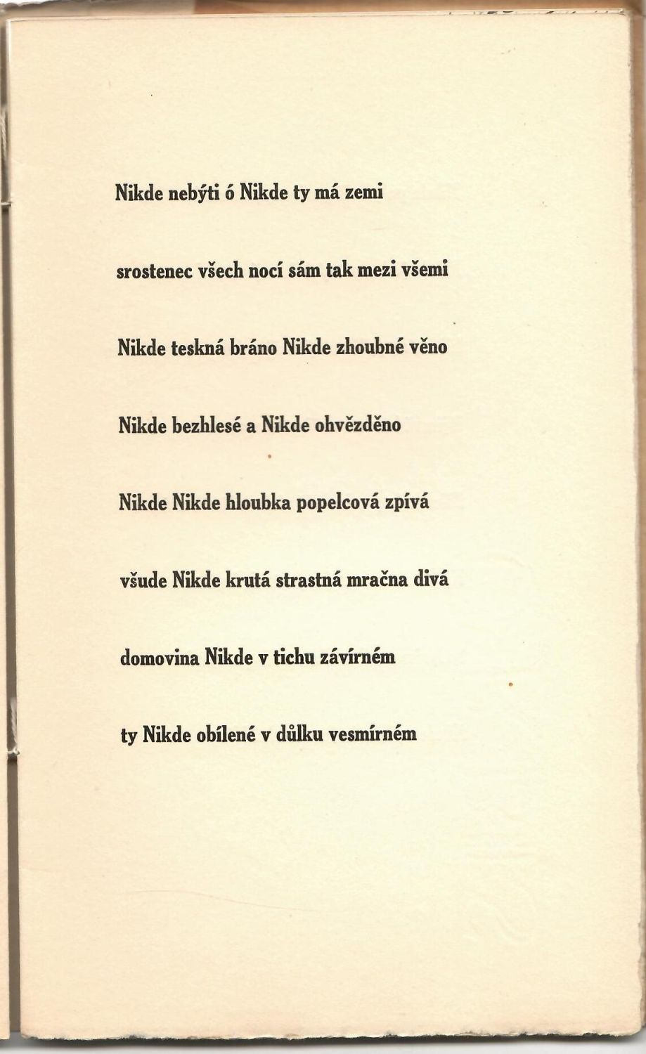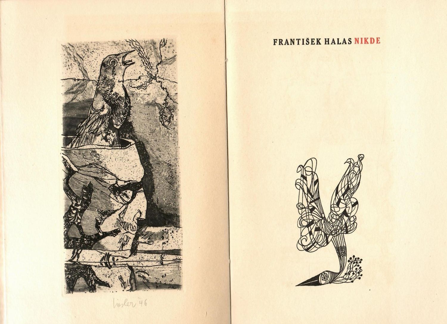 Ex. č 91 z 210 výtisků tištěných na holandu s původním leptem Josefa Lieslera, autorem podepsaným a datovaným, na tit. listu ilustrace, v textu tři celostr. téhož autora, v tiráži podpis básníkův. Doslovem opatřil Václav Černý. Původní pap. obálka s chlopněmi.