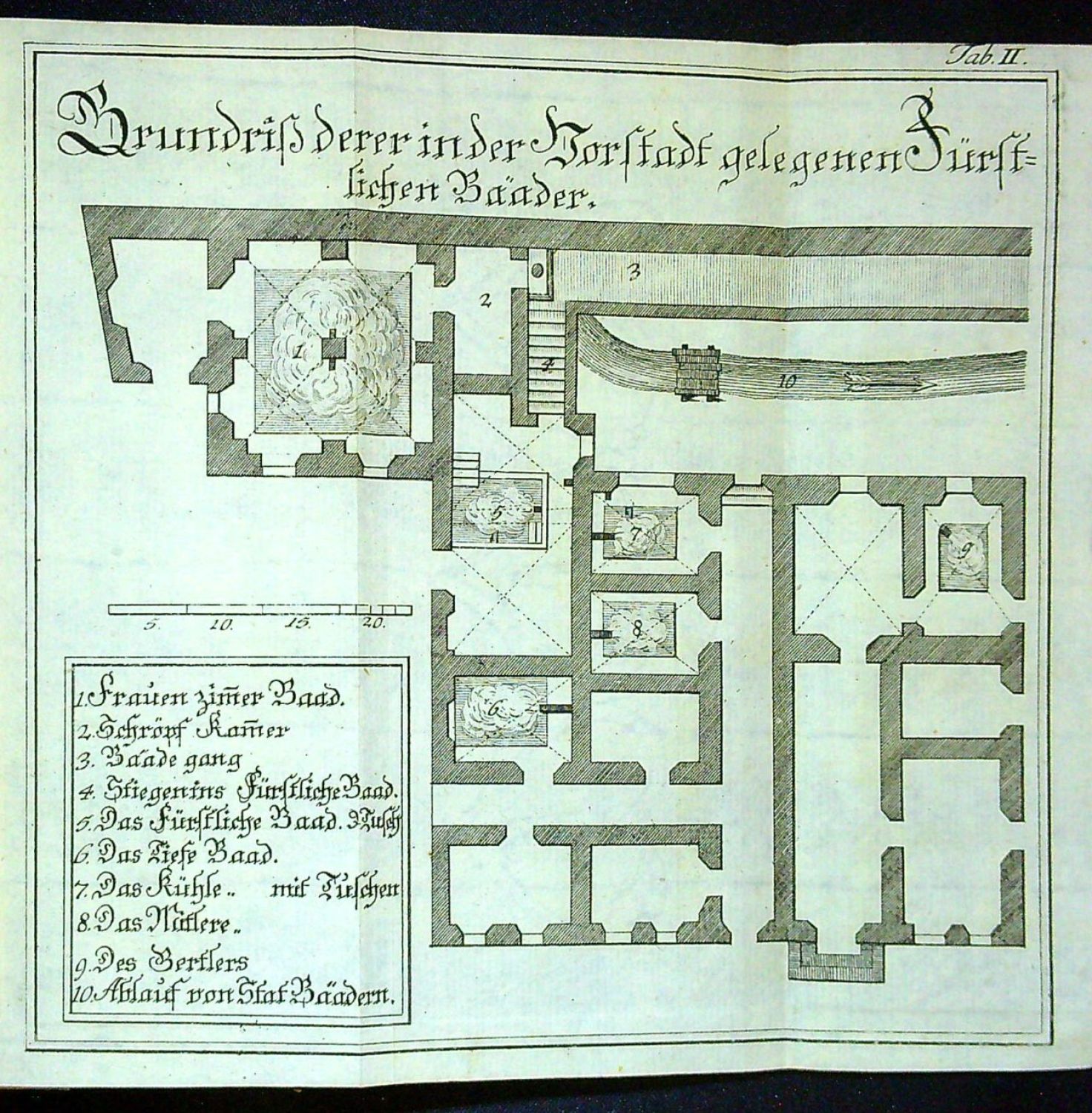 Německý text gotikou, latinská slova antikvou, signatury, stránkové kustody, arabské číslování stran při horním vnějším okraji, uprostřed horního okraje stran ozdůbky, poznámky pod čarou, za tit. listem mědirytina s erbem, mezi stranou 208-209 dvě rozkládací mědirytiny s plánem teplických lázní.
