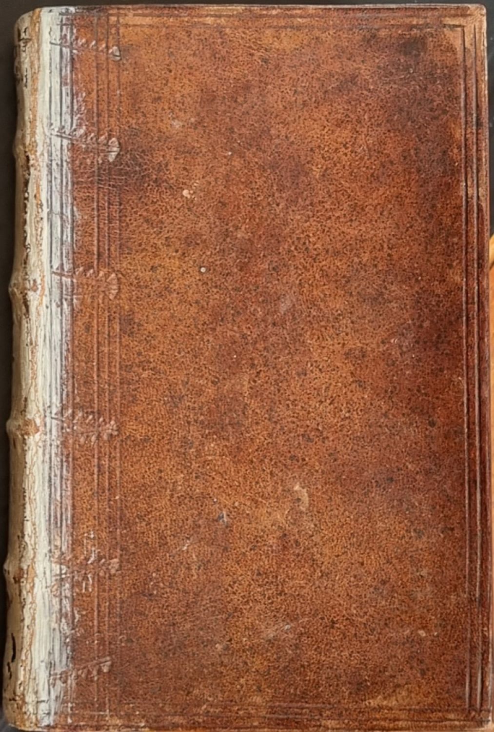 Dobová vazba z hnědé hověziny s tlačeným jednoduchým dvojitým rámem při hřbetu zdvojeným a zdobeným tlačeným ornamentem. Ve hřbetu 4 vazy. Hřbet šedě barvený (typický znak knihoven kapucínských klášterů), v prvním poli perem psaný název, ve třetím poli písmeno "U" a v poli spodním evidenční číslo. Na předním vakátu a jeho rubu provenienční přípisy kapucínů. Za vlastním textem na dvou listech rukou dobově psaná hebrejská a německá abeceda, dvou hlásky, výslovnost a význam. Poslední dva listy při horním okraji lehce pomačkané, jinak ve stavu dobrém.