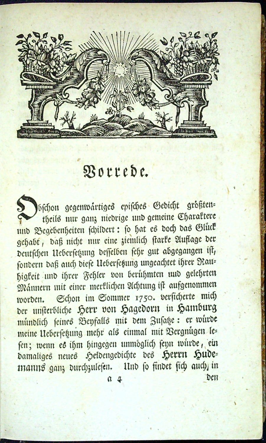Tištěno švabachem, latinské poznámky antikvou, živá záhlaví, dřevorytové vlysy, koncová viněta, tučně tištěné plné iniciálky ve výši 2 řádků, jednoduché linky, tiskařské ozdůbky. V úvodu tištěná dedikace a předmluva Johanna Adolpha Scheibeho, na straně XXIX až CLXXX zpráva o životě a díle Ludwiga Holberga. Vlastní epos psaný v alexandrínech se skládá ze čtyř částí opatřených vlastními mezi titulními listy, před první částí mezi titul "Neues Lied von Peter Paars ..." od Hans Michelsena (pseudonym Holbergův).