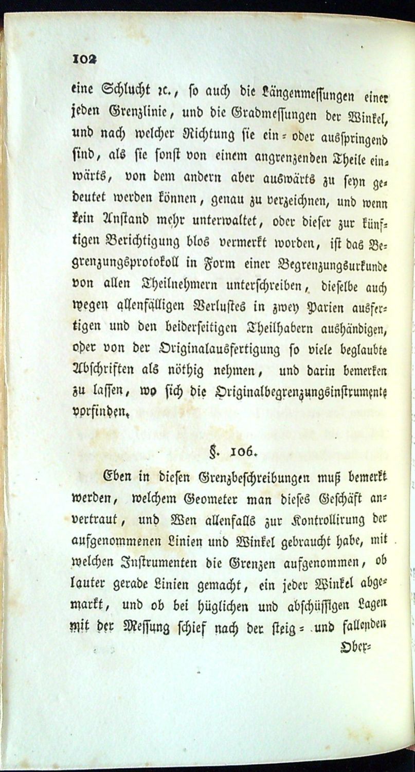 Tištěno švabachem, tištěné poznámky pod čarou, paragrafy. Od strany 209 příklady vytyčování hranic pozemků.