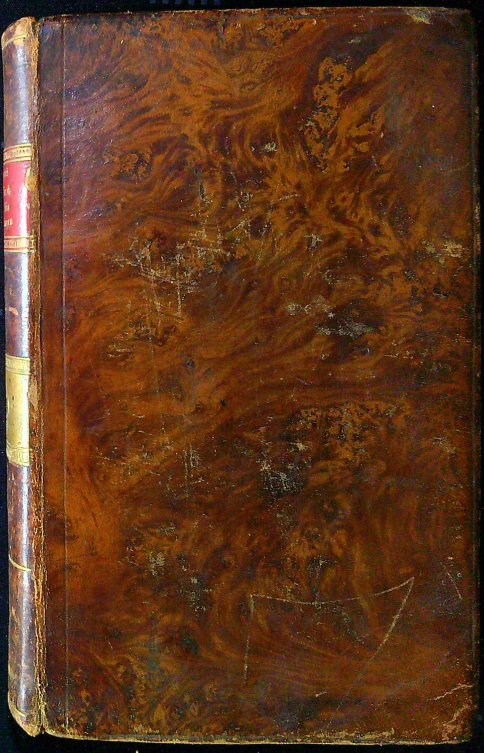 Dobová vazba z hnědé mramorované hověziny, ve hřbetu 6 polí, ve druhém poli červený kožený štítek s tlačeným a zlaceným názvem, ve čtvrtém poli světle zelený kožený štítek s tlačeným a zlaceným ornamentem, barvené předsádky, na přídeštích a předsádkách dobový olejový papír. Vazba lehce ohmataná a na zadní desce mírně odřená. Chybí příloha (hraniční mapa). V textu tu a tam hnědé skvrnky způsobené kyselostí papíru.