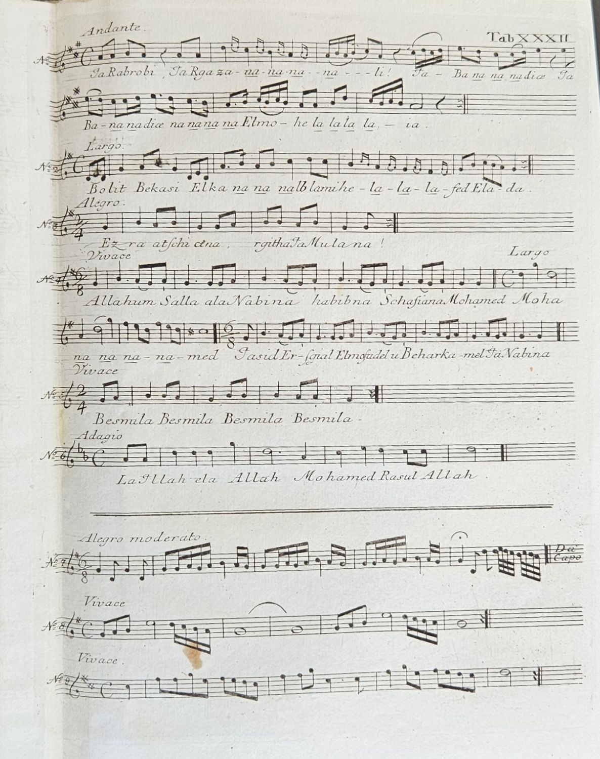 Tištěno švabachem, latinská slova antikvou, názvy, jména a citace z textů též arabsky. Na tit. listu do mědi rytá viněta, vstupní dřevořezový vlys, viněty, živá záhlaví.