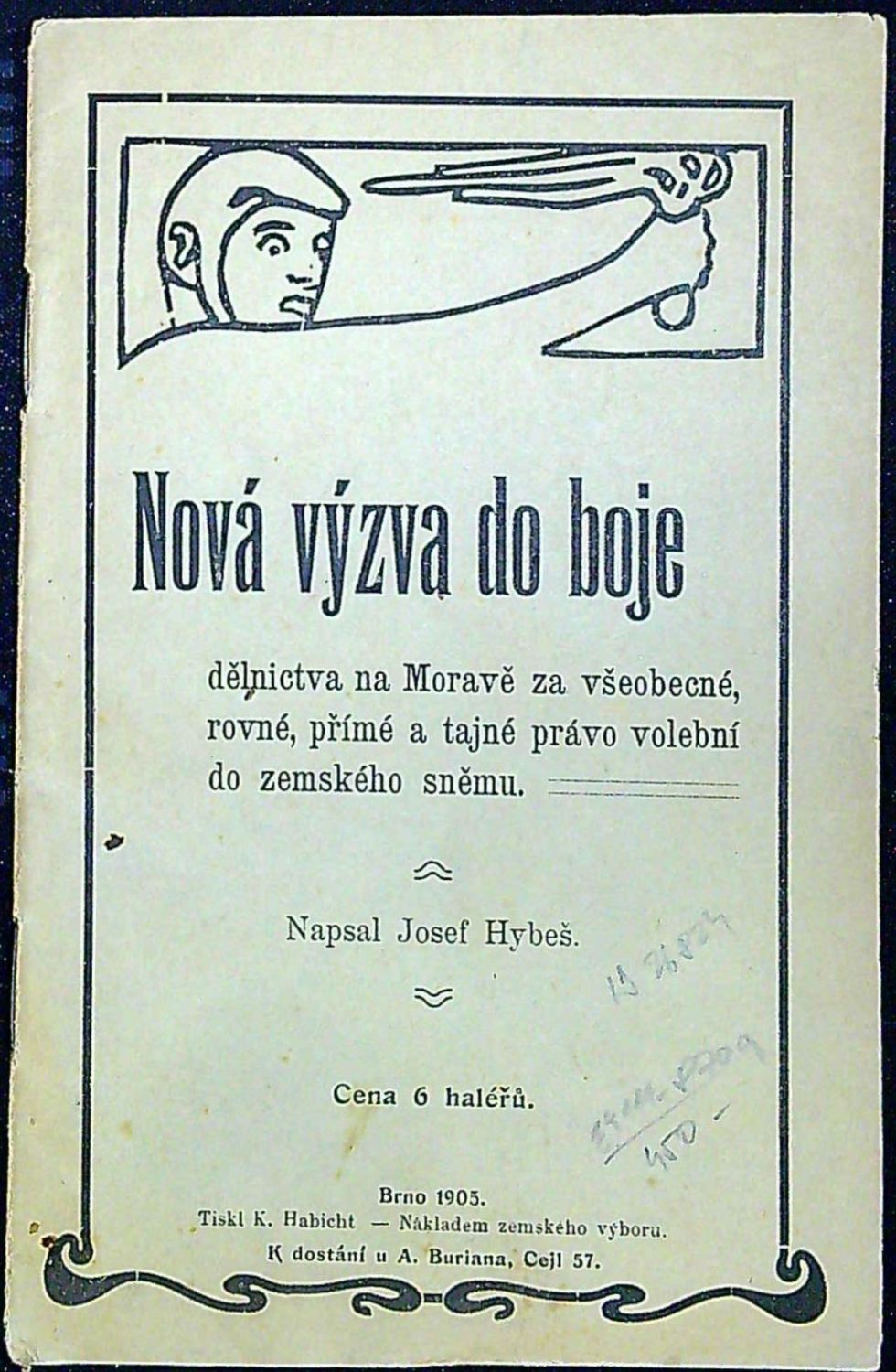 Na přední straně obálky v záhlaví ilustrace s vyobrazením bojovníka (F. Gellner ?), na zadní číslované straně obálky text a koncová vinětka.