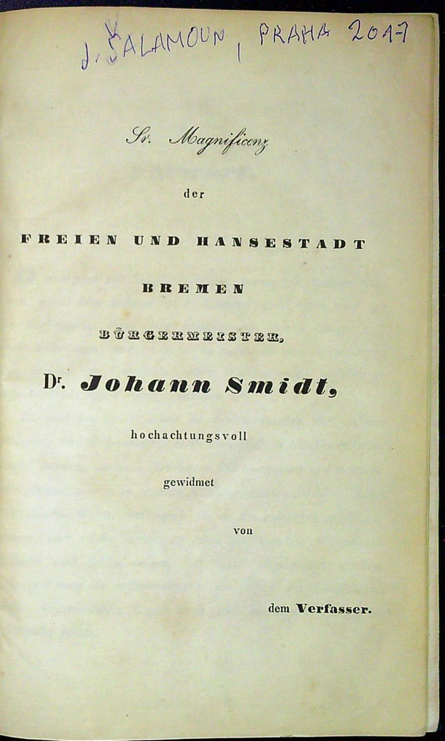 Dobová vazba s kartonovými deskami potaženými mramorovaným papírem, koženým hřbetem a nárožnicemi, ve hřbetu dělená pole zlacenou linkou, ve druhém poli původní zelený kožený štítek s tlačeným a zlaceným názvem, zeleně barvené ořízky, lehce naražené horní rohy, papír místy zahnědlý. Na tit. listu podpis Jiřího Šalamouna propisovací tužkou.