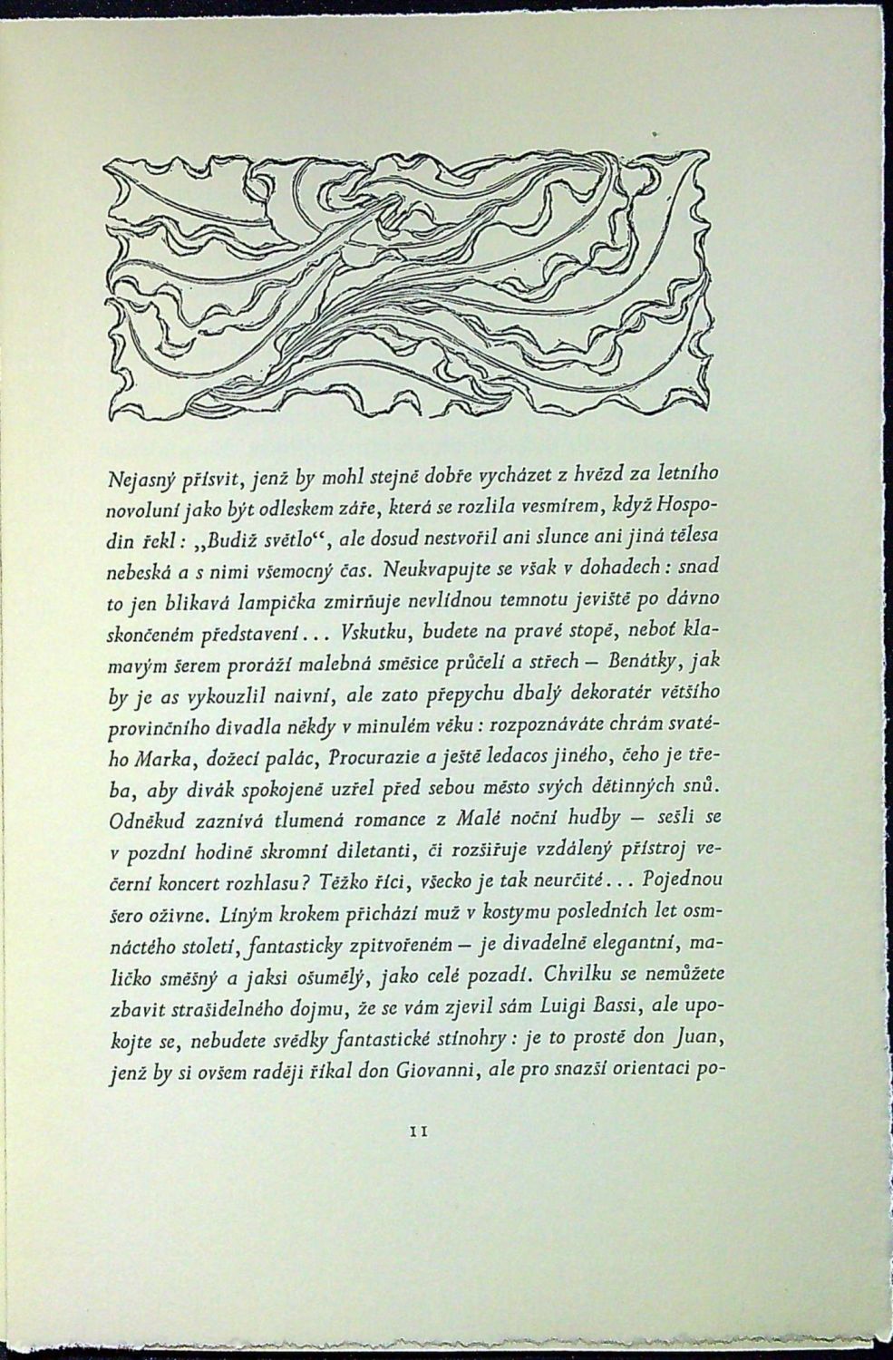Ex. č. 22 z 50 výtisků přednostního vydání tištěného na ruční papír. V tiráži podpis Koblihův tužkou. Dvoubarevně tištěný tit. list a přední strana obálky. - Původní pap. obálka s chlopní, ve které je volně vložený, nerozřezaný knižní blok. Obálka lehce zaprášená.