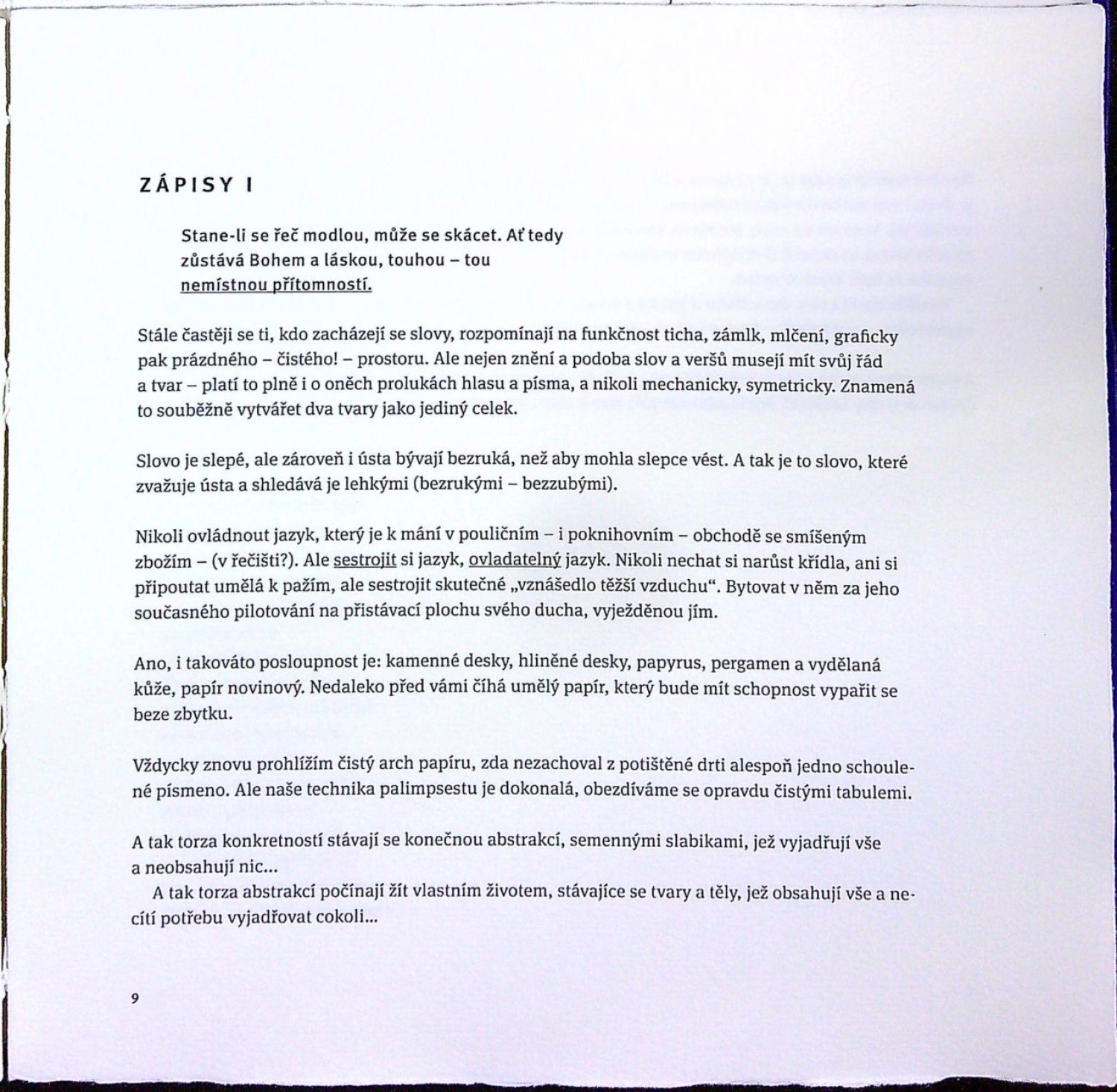 Ex. č. XII z XXX ex. autorských tisků. (Celkový náklad 50 výtisků). Typograficky upravil Jan Herynek, tištěno na ruční papír Losín, tisk provedla Papírenská manufaktura Velké Losiny. Z rukopisné pozůstalosti a ze sbírky "Obyvatelná města" uspořádala a k vydání připravila Anna Kareninová. Redigoval a doslov napsal Jakub Guziur. - Původní pap. obálka s chlopněmi a s reliéfem z písmen na přední straně, ve které je volně vložený bílou nití šitý knižní blok. Původní ochranná obálka z modrého papíru s kantnami + původní ochranné kartonové pouzdro z modrého papíru (rozměr 210 x 210 mm). Vazbu zhotovilo knihařství Jiří Fogl a Pavlína Rambová v Žamberku. V tiráži podpisy tužkou A. Kareninové a J. Guziura.
