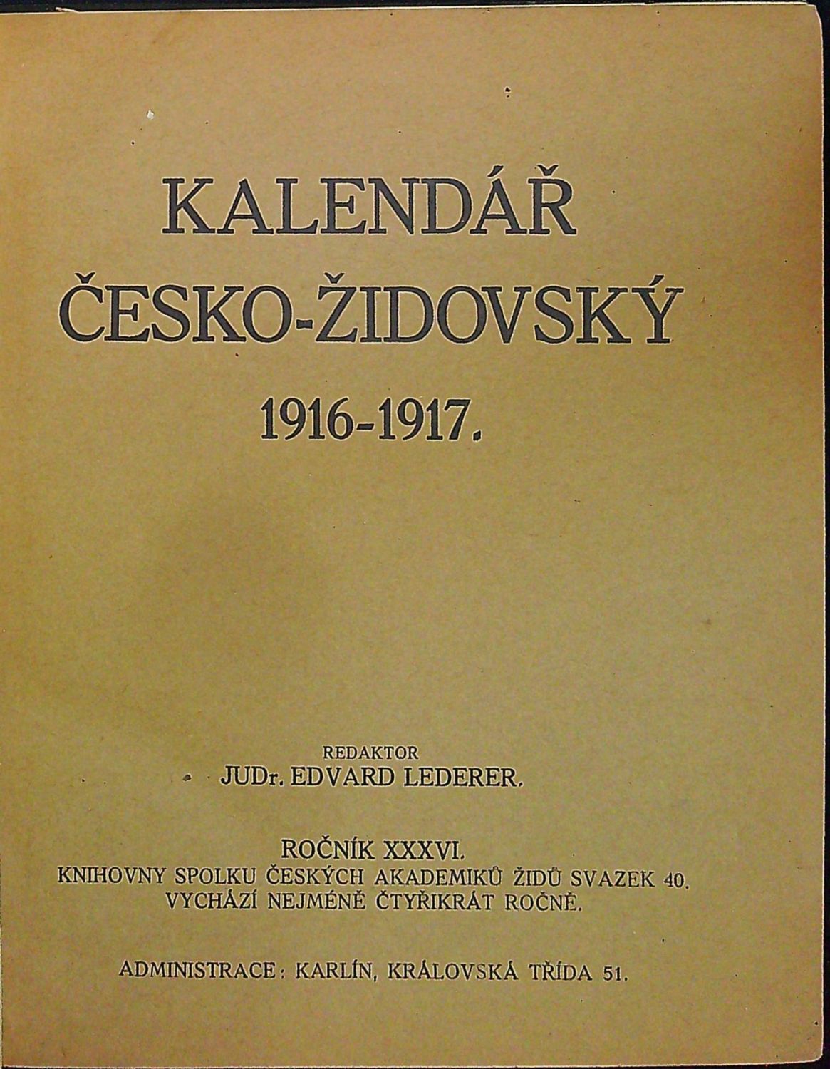 Kalendář česko-židovský 1916-17. (Ročník XXXVI.)
