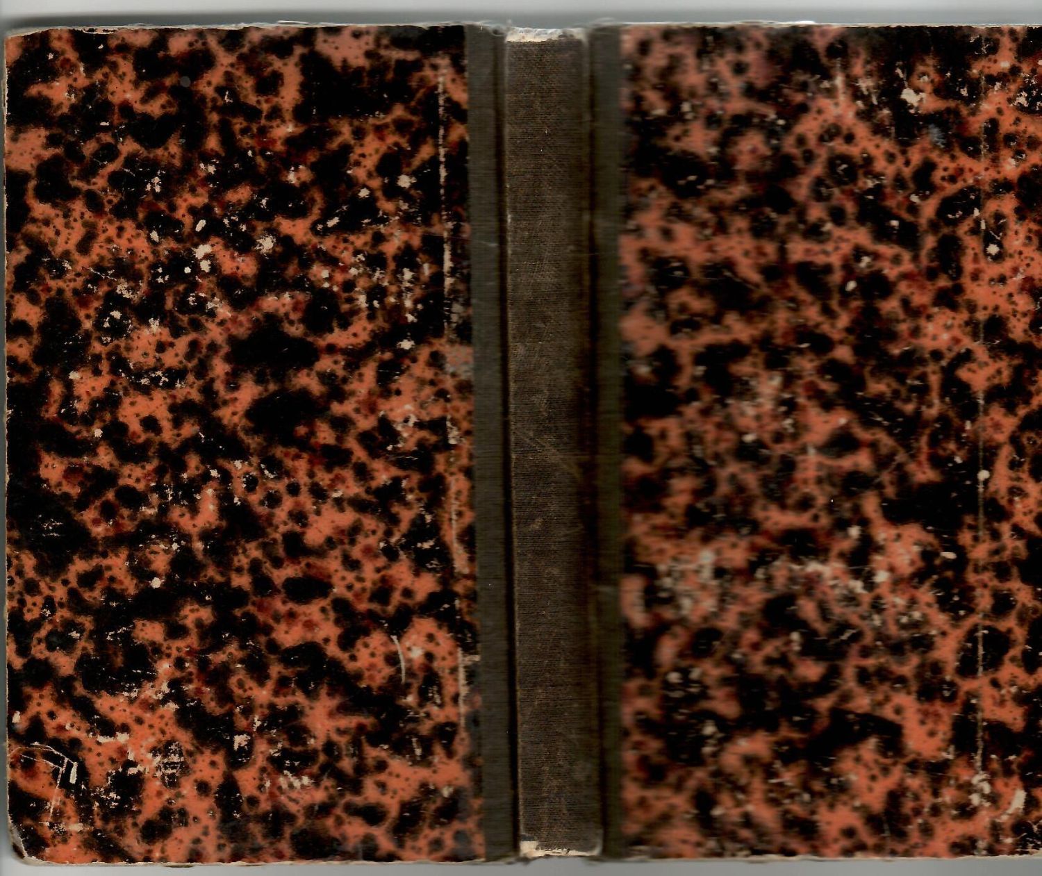 Kartonové desky potažené mramorovaným papírem s plátěným hřbetem, stříkané ořízky. Vazba ohmataná a místy lehce odřená, naražené rohy. Titulní list zahnědlý a vyspravený podlepením, papír zahnědlý, místy hnědé skvrnky a skvrny způsobené kyselostí papíru.