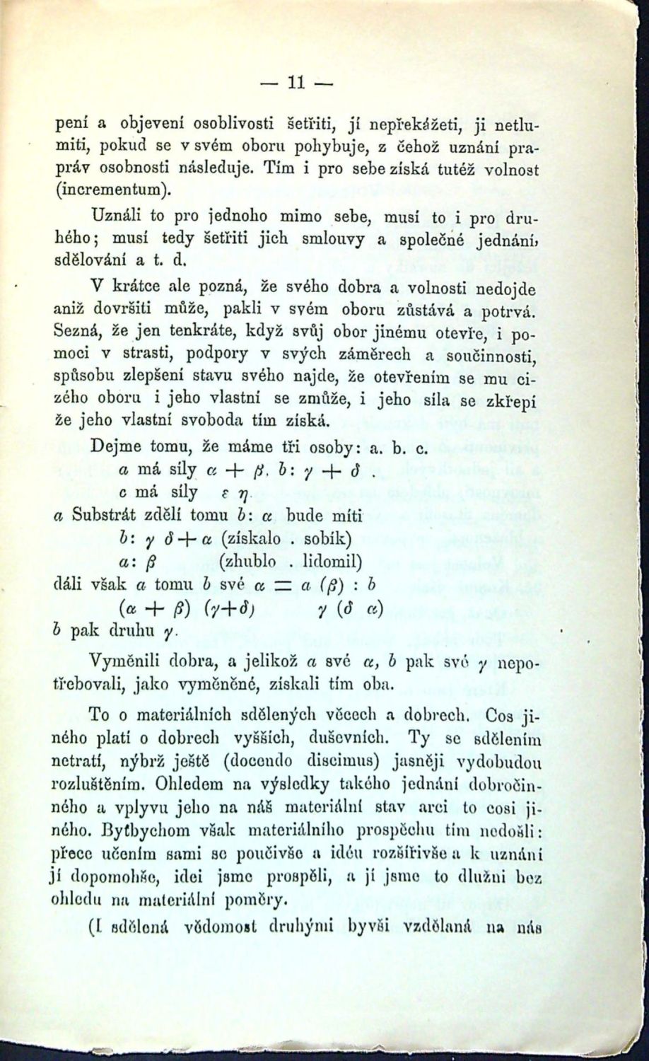 Bez původní papírové obálky, poslední dva listy jsou při okrajích s mapami od vlhkosti a poslední list je při okrajích lehce potrhaný. - Znamenitá práce plná novotvarů a jistého druhu "Mašíbloviny". V závěru "Slovo, nímž pojem teprva osobníkem myselstva se stává, velmi k určitosti vidimy přičiňuje a v jisté meze ji víže. Zvukem, příbuzností a jinými slovy rovnovýznamnými a přechodem na nověnaznačený a přivlastněný předmět, úbočnými potahy na postřehy a čití určitý dojem povstává, jež úvykem v nov k ousobnění neurčitého v sobě ale i volnějšího pojmu přispívá".
