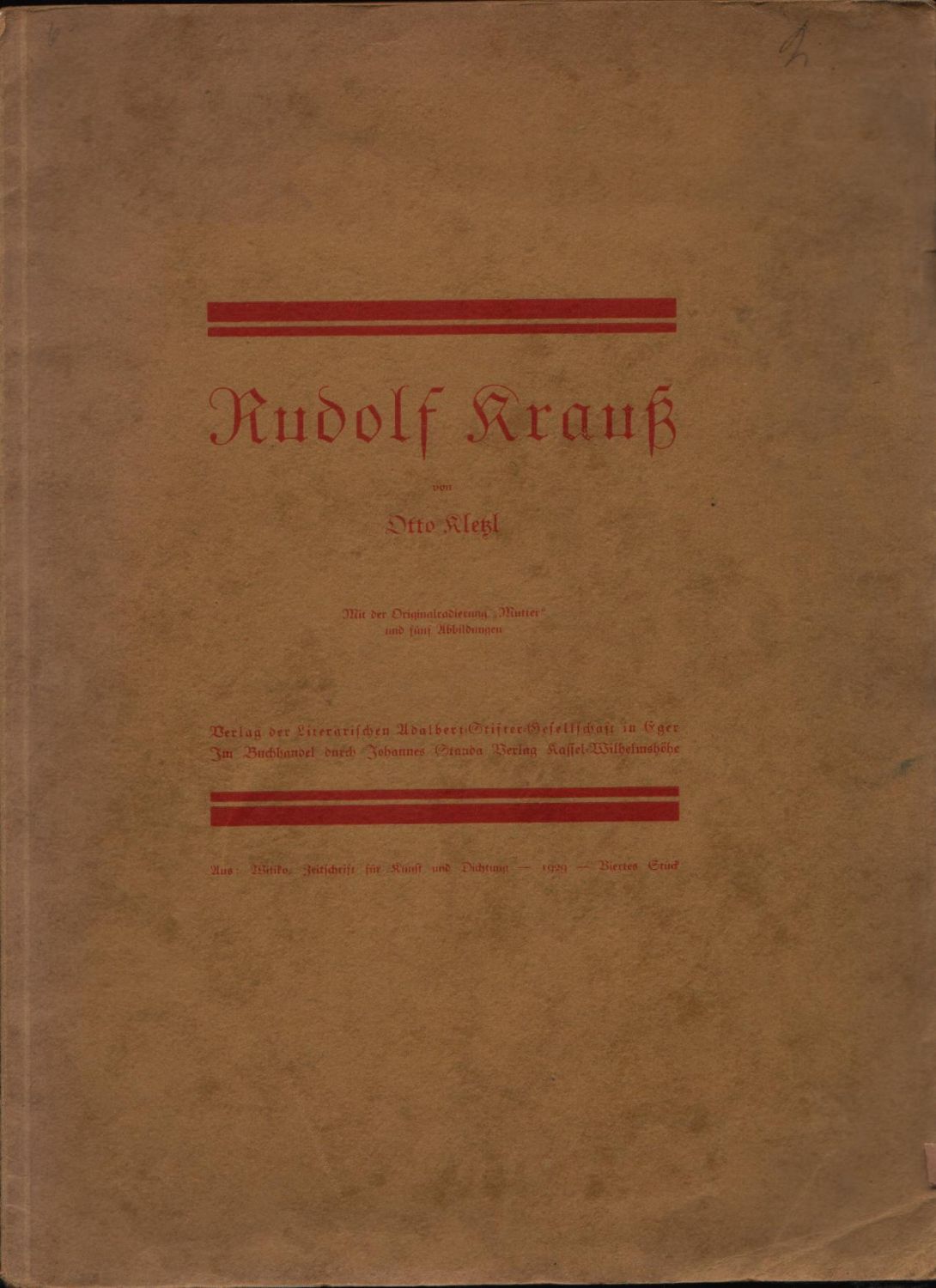 Rudolf Krauß (1900-1930), českoněmecký malíř a grafik, studoval na pražské akademii u prof. A. Brömseho. - Kunsthistorik Otto Kletzl (1897 Česká Lípa - 1945 Poznaň), bratranec Alfreda Kubina, byl zakládajícím členem "Pražské secese" (1928) a časopisu "Witiko", vycházejícího v letech 1928-1931.