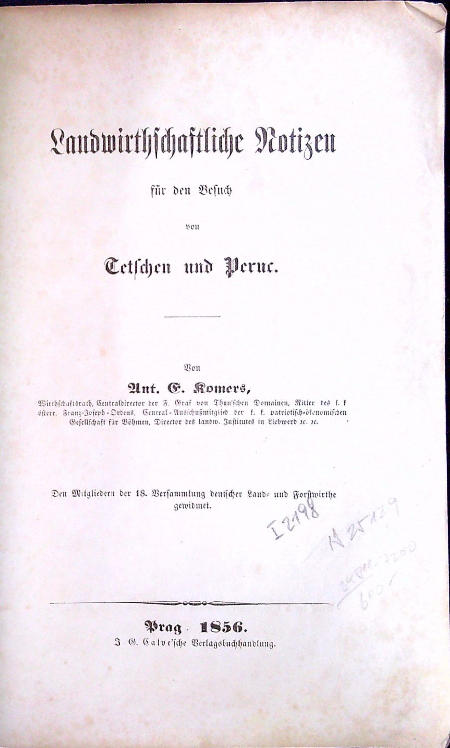 Landwirthschaftliche Notizen fü den Besuch von Tetschen und Peruc.