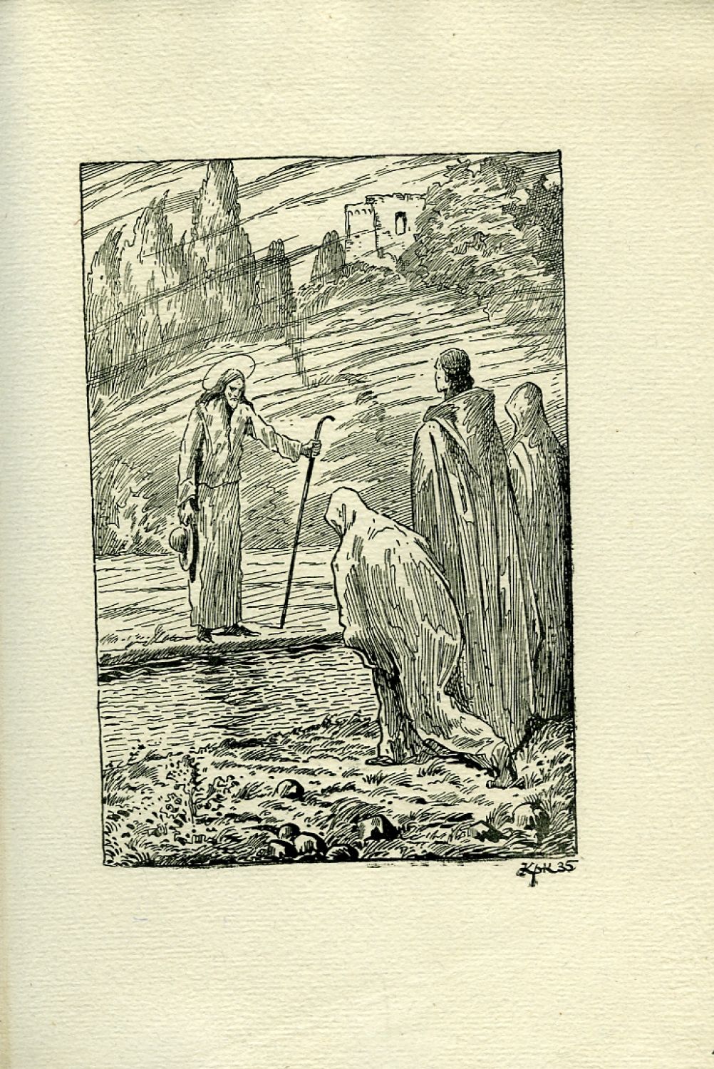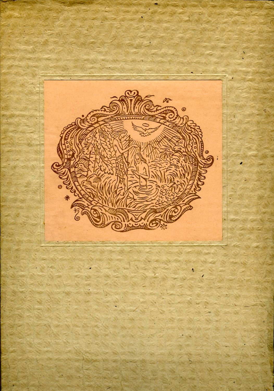 Grimm 153; Sáňka 3708. - Sázel, na ručním lisu Dyrynkovými biblickými typy tiskl a vydal J. Picka v počtu 50 nečísl. výt. na ručním domácím papíře; tit. list tištěn černě a červeně. Obálka z mačkaného kartonu, na přední straně obálky nalepený původní pap. štítek s Konůpkovou ilustrací. - Okraje tit. listu mírně zahnědlé, jinak ve stavu velmi dobrém.