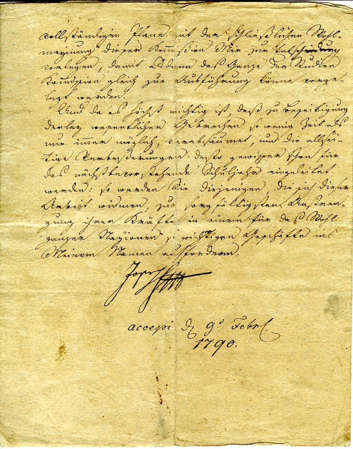 12) LEOPOLD II. (1747-1792), král český 1790-1792. Kondolence hraběti Kolovratovi psaná německy černým perem na dvoulistu 230 x 185 mm, podepsaná a datovaná 11.5.1790.