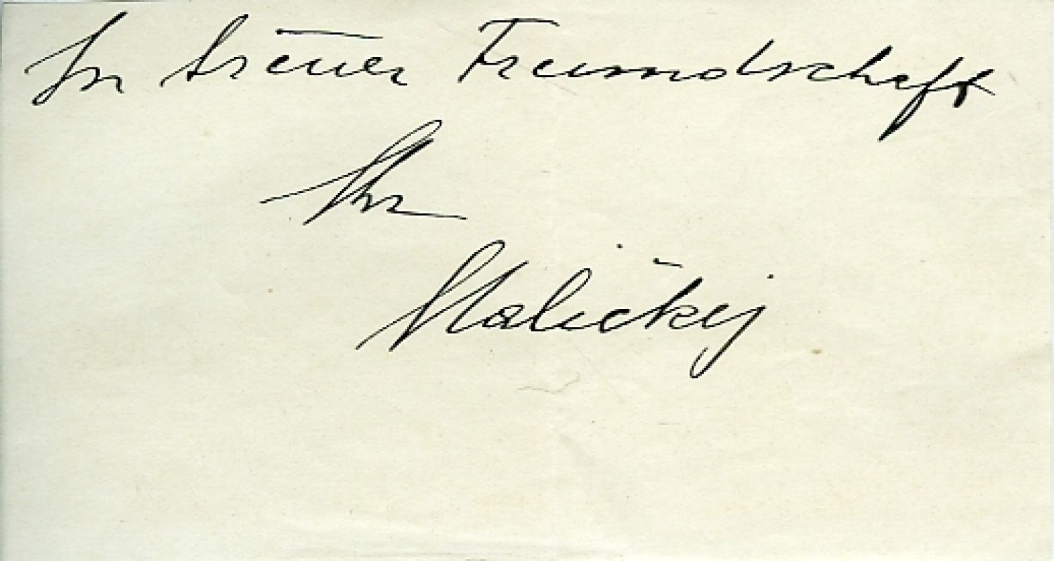 18) KAREL I. (1887-1922), poslední král český a císař rakouský 1916-1918. Arcivévodou zaslaný „lístek“ jeho osobnímu pobočníkovi Slavi Grossovi, odeslaný poštou z Bíliny 20.12.1905 do Prahy; lístek je z vyhlazené láhvové záklopky, která je přepnutá přes vizitku, do záklopky jsou vlastnoručně vyryta jména arcivévodova a několika důstojníků. + Ústřižky s podpisem arcivévody z jeho dopisů pobočníkovi Grossovi, 2 ks. + Ústřižek z dopisu Grossovi s podpisem arcivévody jeho plukovní přezdívkou "Maličkej". + Šest fotoportrétů arcivévody a rodinných příslušníků.
