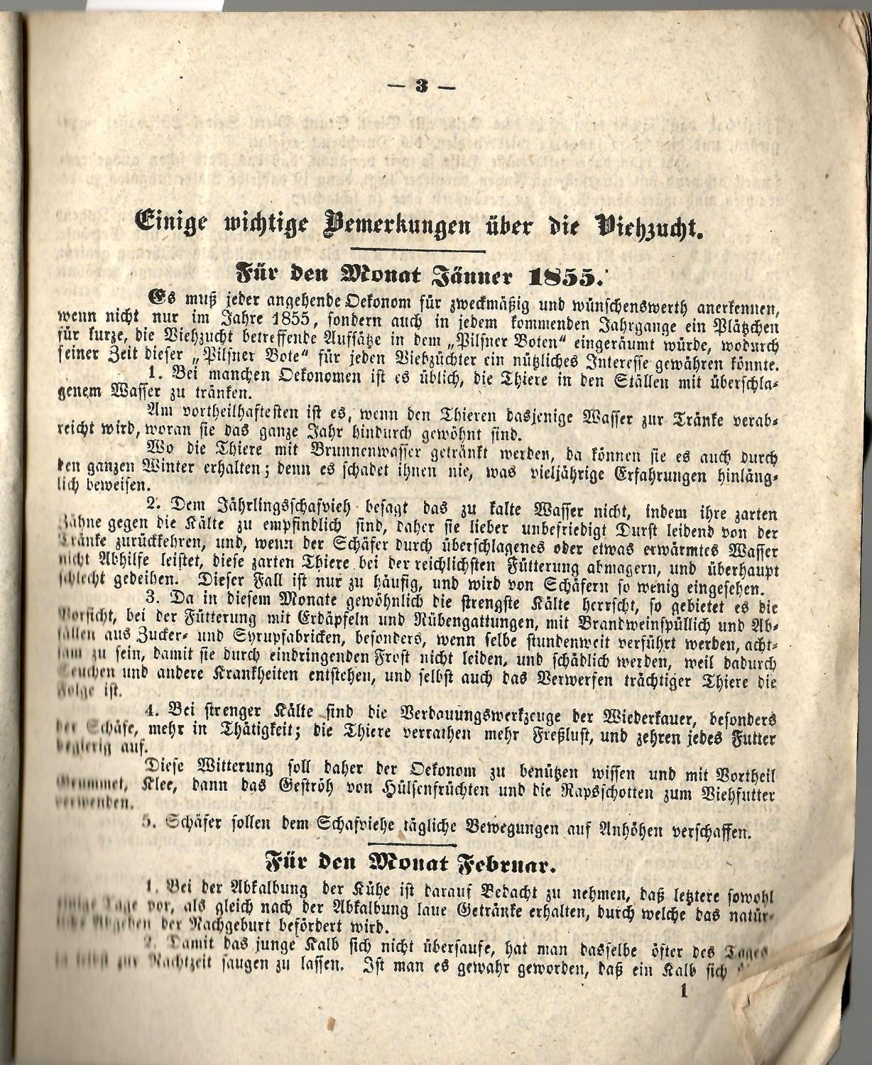 Bemerkungen in der Viehzucht eines jeden Monats für das Jahr 1855.