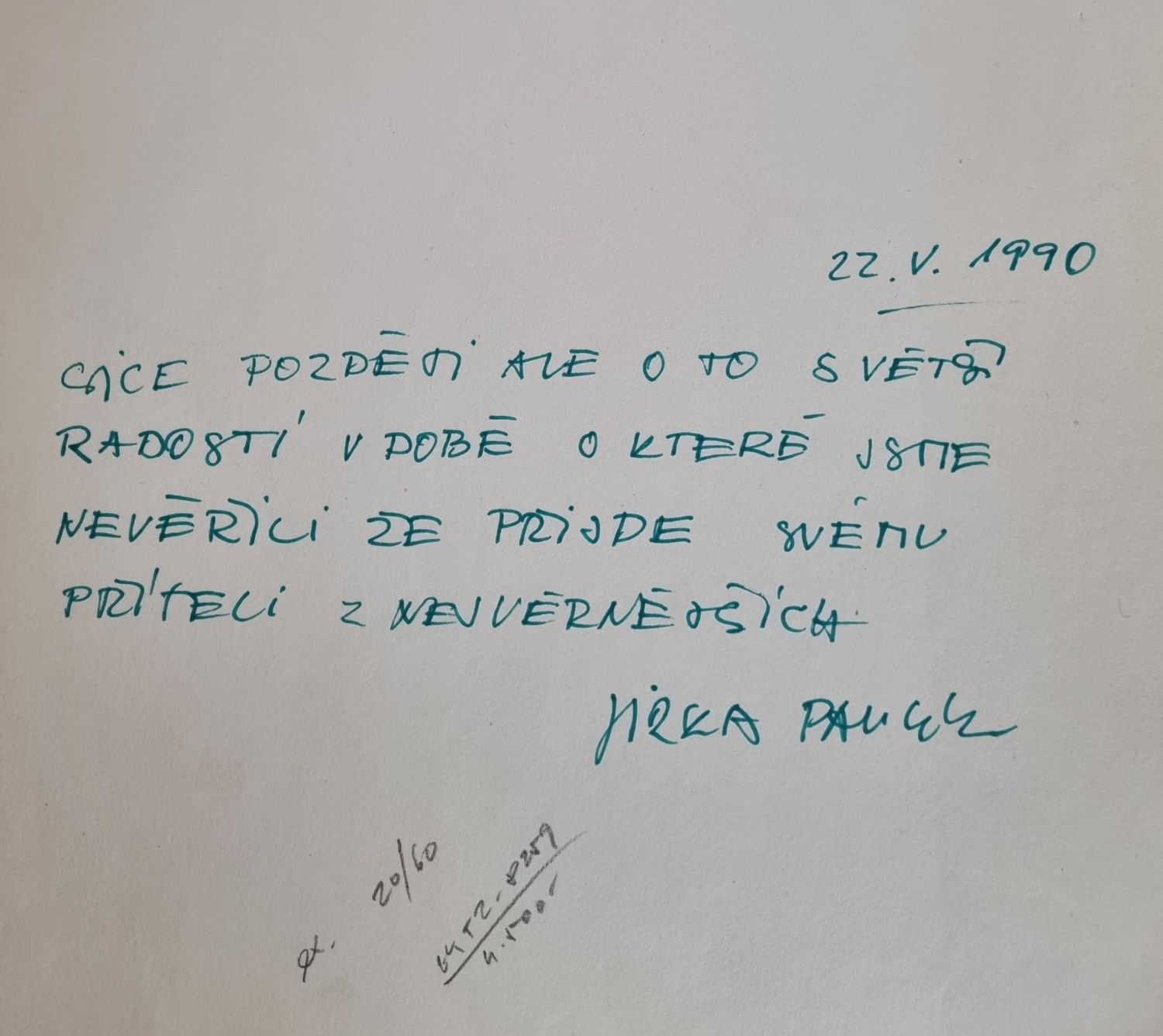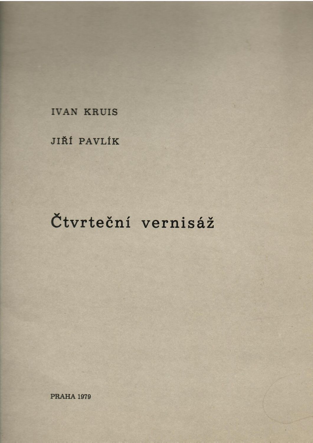 Ex. č. 20 ze 60 vydaných. Po líci devíti listů tištěné básně Ivana Kruise, na devíti listech původní litografie Jiřího Pavlíka na tónovaném pozadí, autorem vpravo dole tužkou podepsané, vlevo dole číslované. Původní obálka z tužšího papíru, ve které jsou volně vložené jednotlivé listy. Tiráž na zadní straně obálky. Obálka ve hřbetu mírně potrhaná, oslí uši.