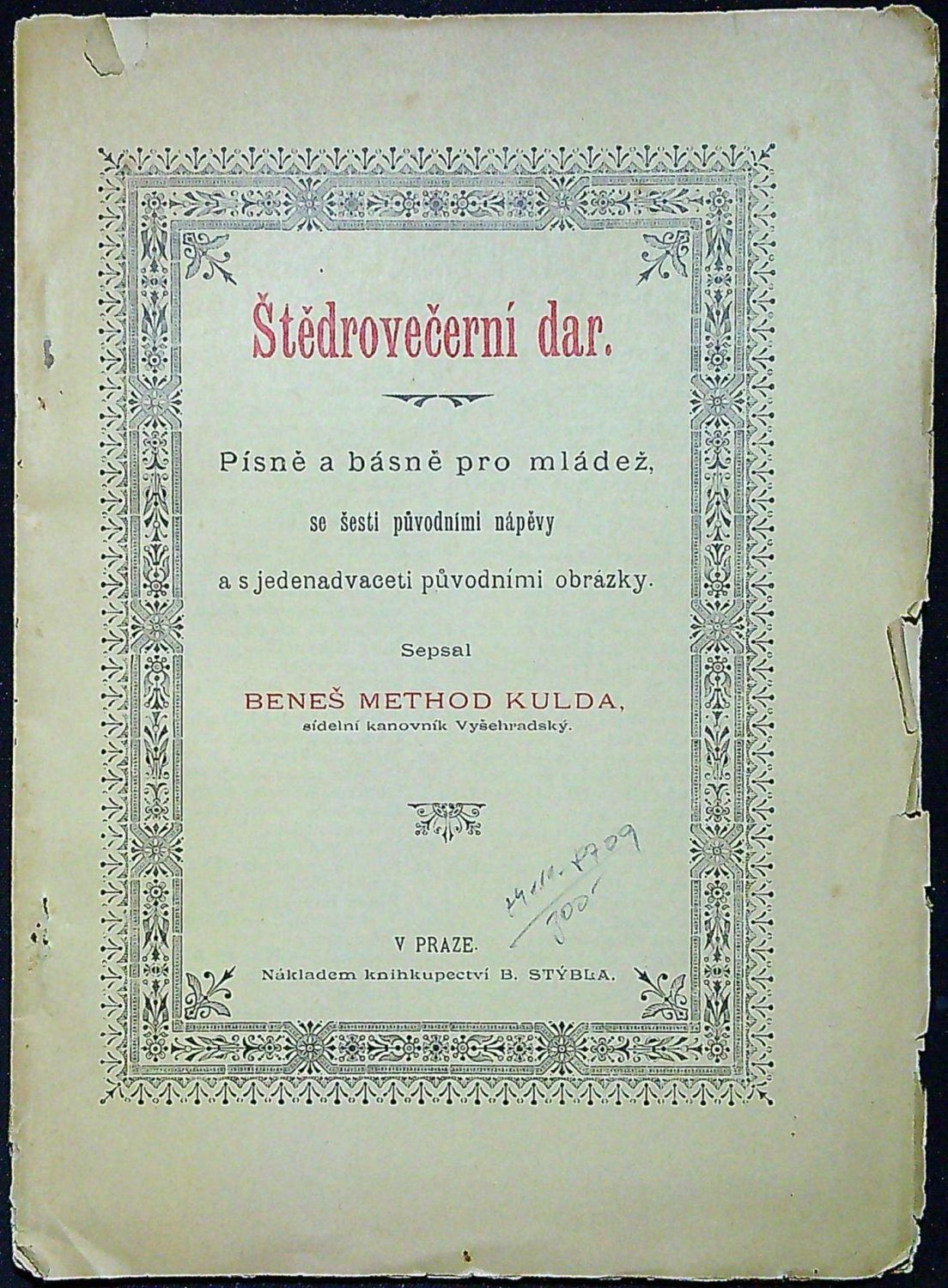 Štědrovečerní dar. Písně a básně pro mládež, se šesti původními nápěvy a s jednadvaceti původními obrázky.