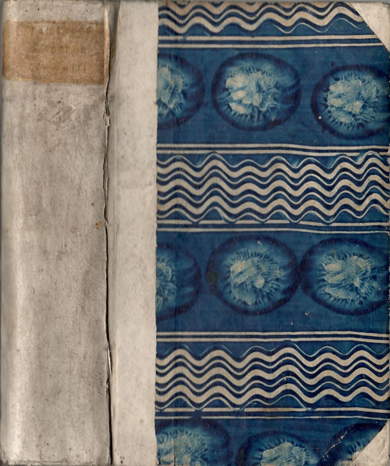 Dobová vazba s kartonovými deskami potaženými olejovým papírem, pergamenový hřbet a nárožnice, při horním okraji hřbetu světlý dobový kožený štítek s tlačeným a zlaceným názve,, barvené ořízky. Vazba ohmataná a místy lehce odřená, pergamen. ve hřbetu místy lehce natržený, zlacený název ve štítku vybledlý.