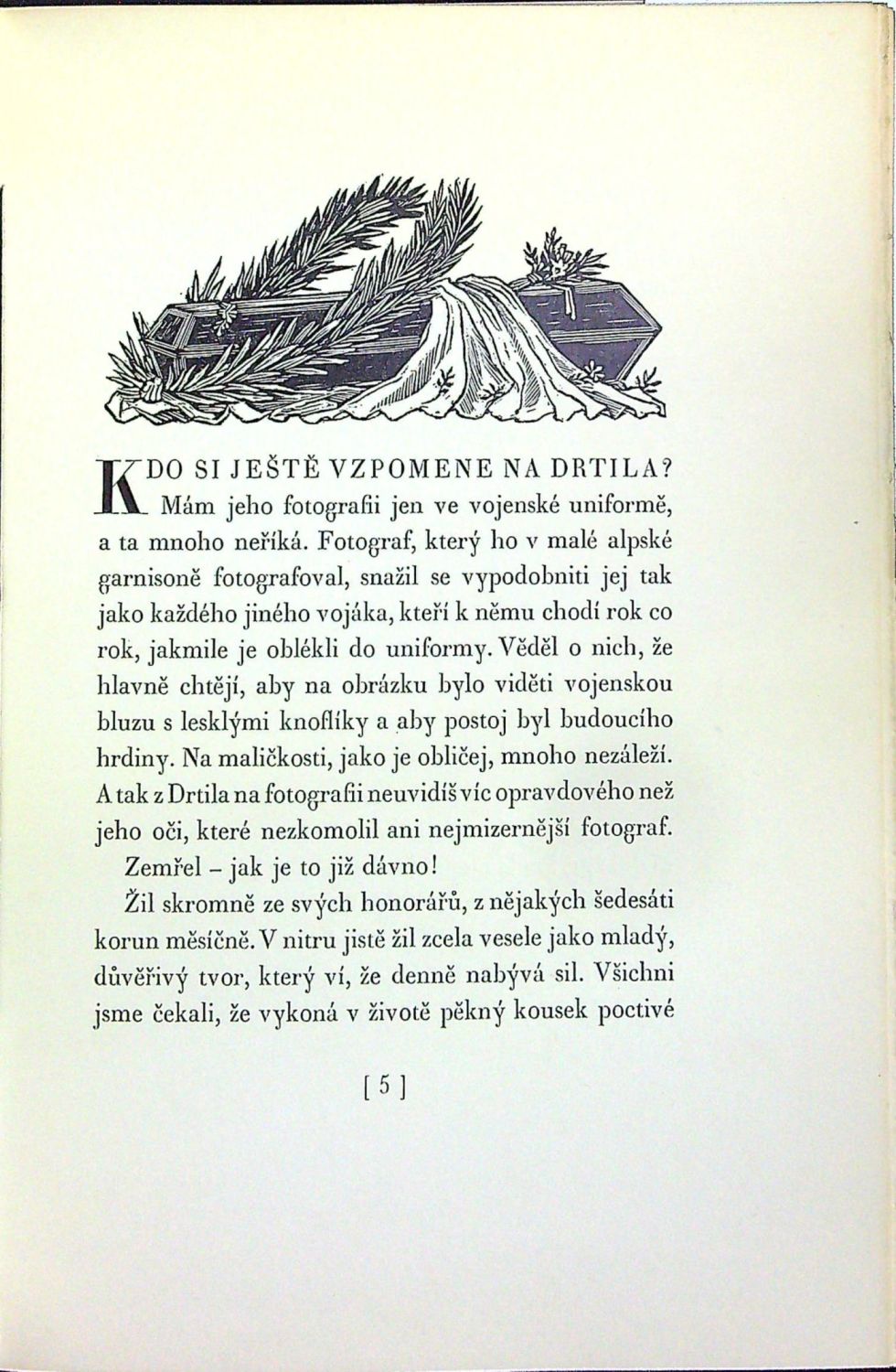 Jeden z 280 vydaných exemplářů, které podle osnovy M. Kalába vytiskla písmem Pierre Didot na holandský ruční papír Pannekoek Průmyslová tiskárna v Praze. - Původní obálka s chlopněmi, ve které je vložený knižní blok ve dvou vazech šitý černou nití.