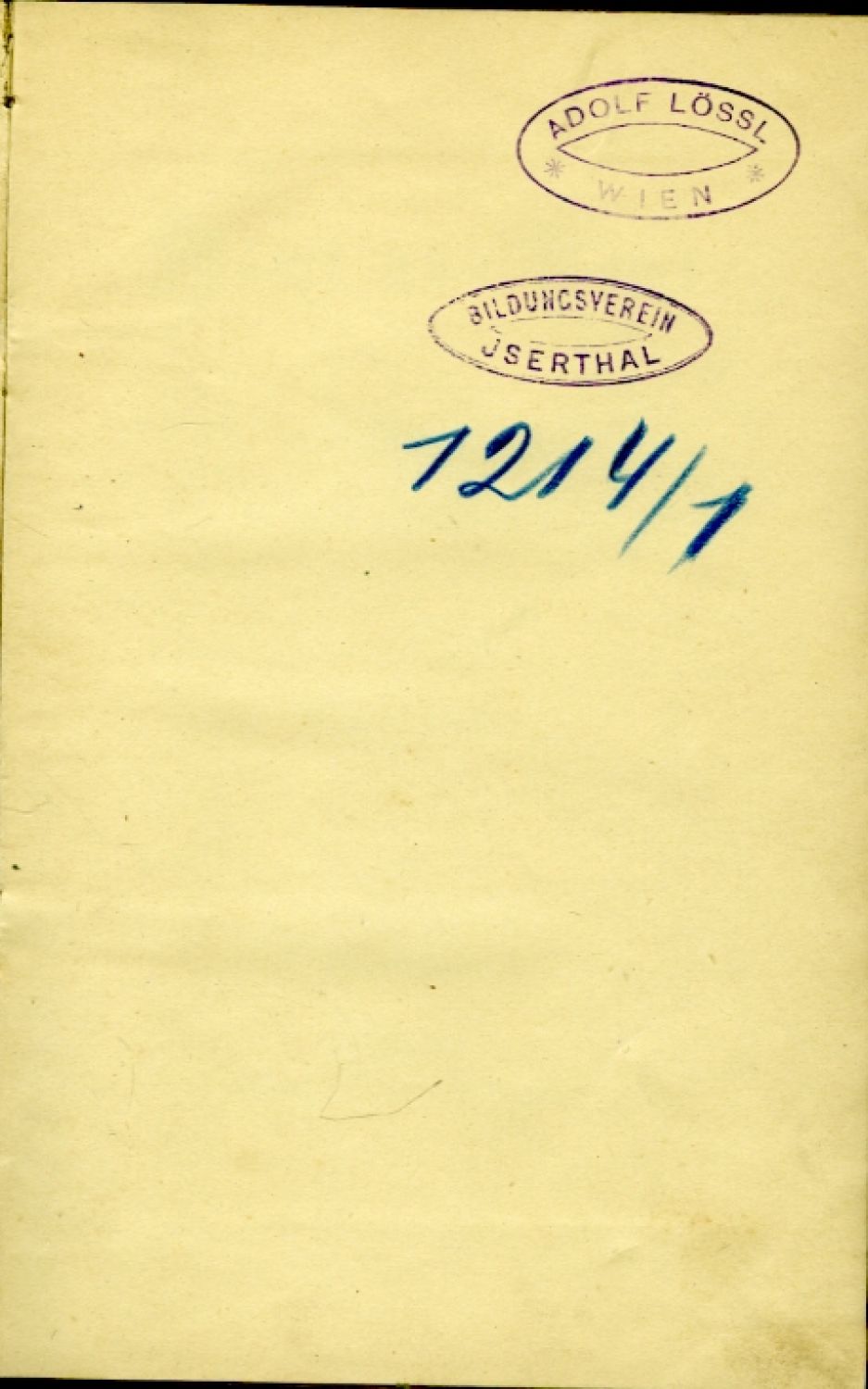 Nárožnice a hřbet potaženy vínovým plátnem, na hřbetě zlac. věcný název a starý knihovnický štítek; na přední předsádce, 1. titulním a následujícím listu stará razítka "Bildungsverein Iserthal" a rkp. knih. signatury, impresum zde část. vymazáno a začerněno, na prvních dvou listech přívazku hnědé skvrnky, tit. a poslední strana zde mírně ušpiněná.