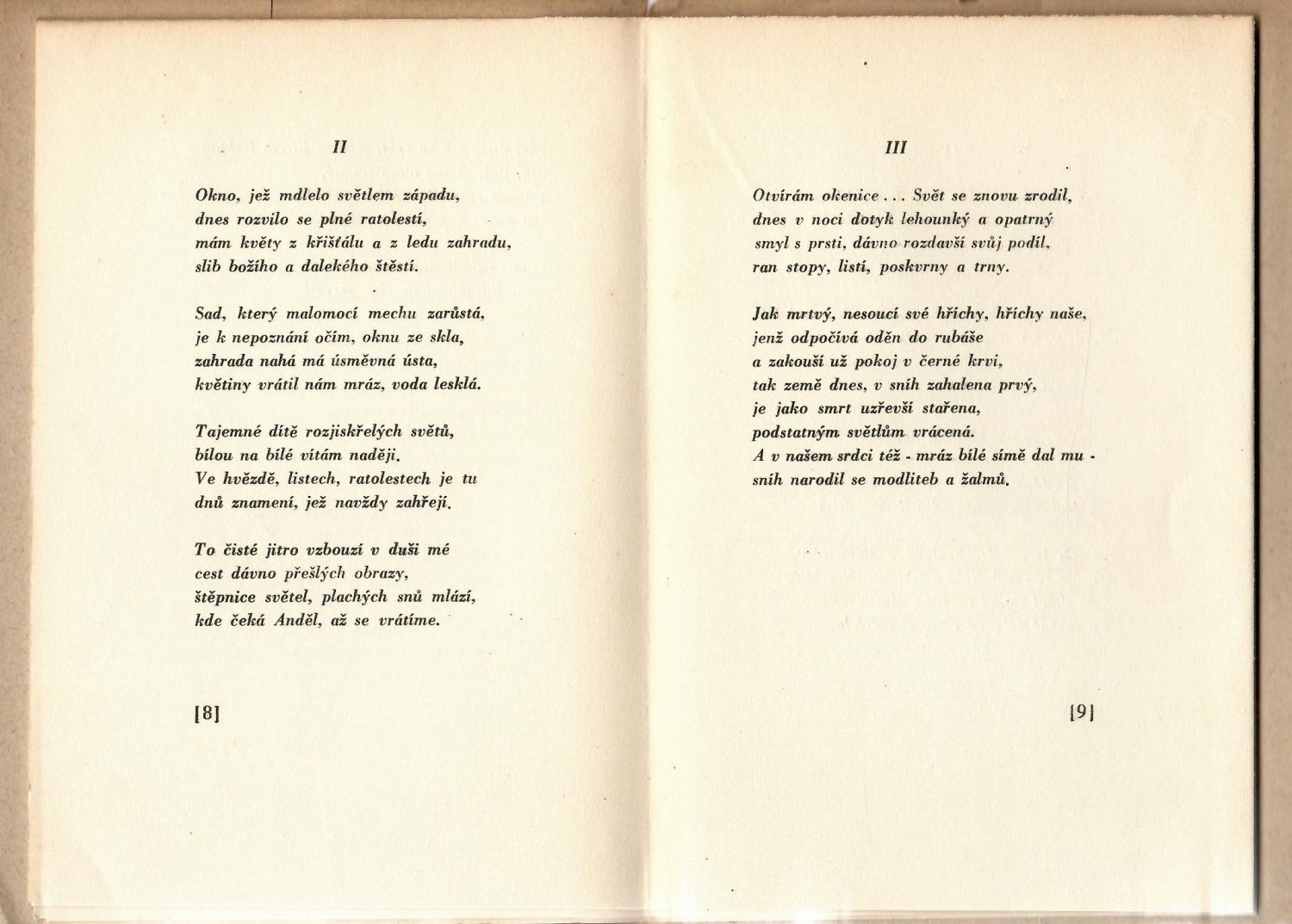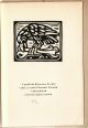 Exemplář č. 102 ze 120 vydaných, které na ručním lisu vytiskl Vlastimil Vokolek. Přeložil Bohuslav Reynek. Dvoubarevně tištěný titulní list, původní dřevoryt na přední straně obálky a závěrečná viněta nad tiráží. Obálka při horním okraji a podél hřbetu mírně zahnědlá, nerozřezáno.