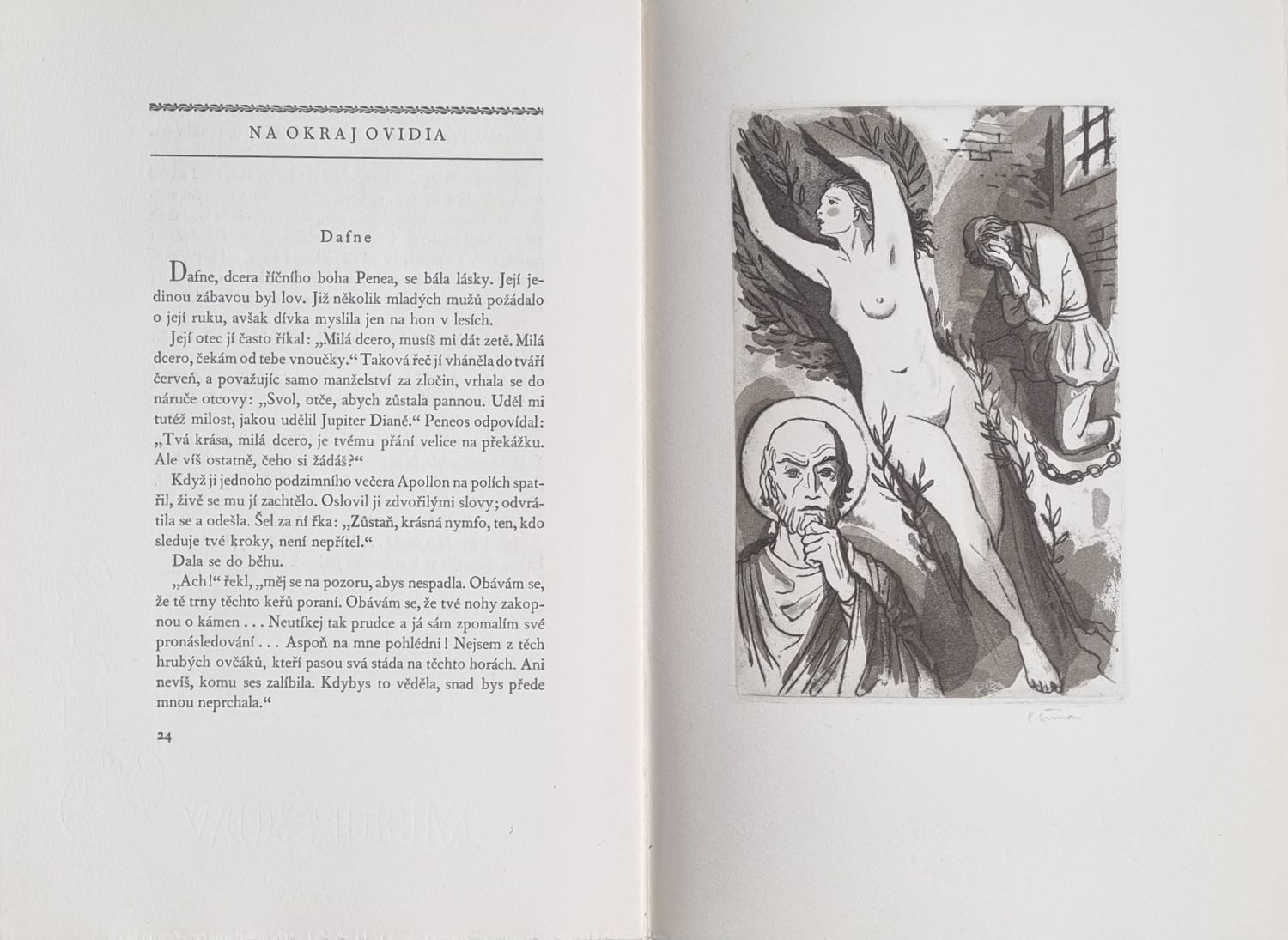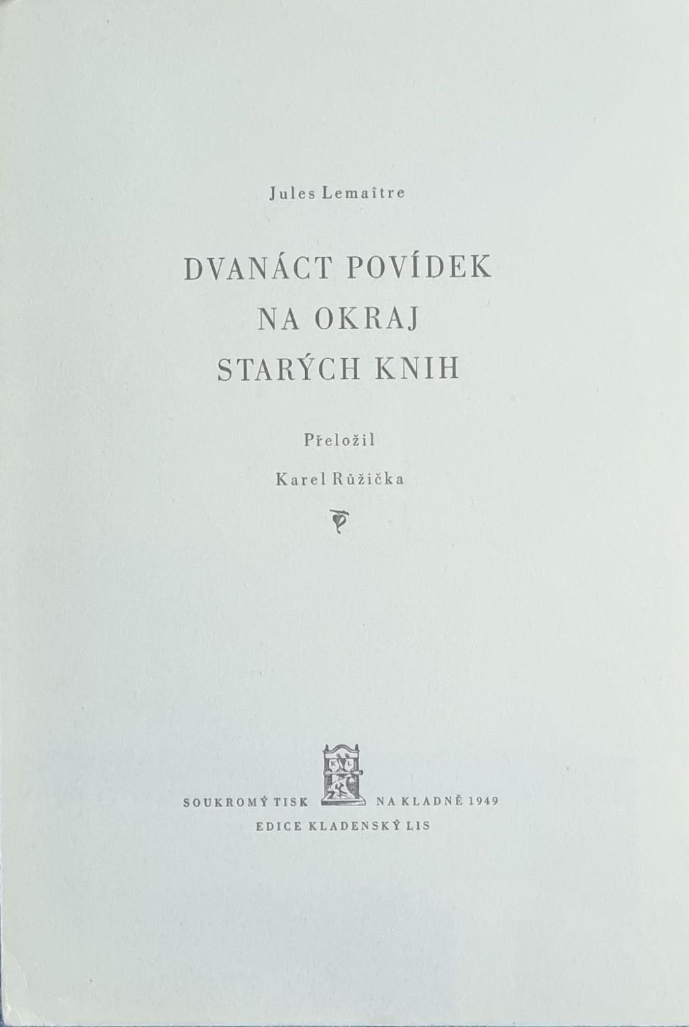 Ex. č. 45 z 99 vydaných, které na ručním lisu vytiskl a typograficky upravil Josef Cipra z písma cicero Fournier na ruční Maršovský papír. Přeložil Karel Růžička, V tiráži je uvedeno datum 1949, ve skutečnosti kniha byla vytištěna v lednu roku 1952. V tiráži podpis překladatelův. Červeno-černě tištěný titulní list.
