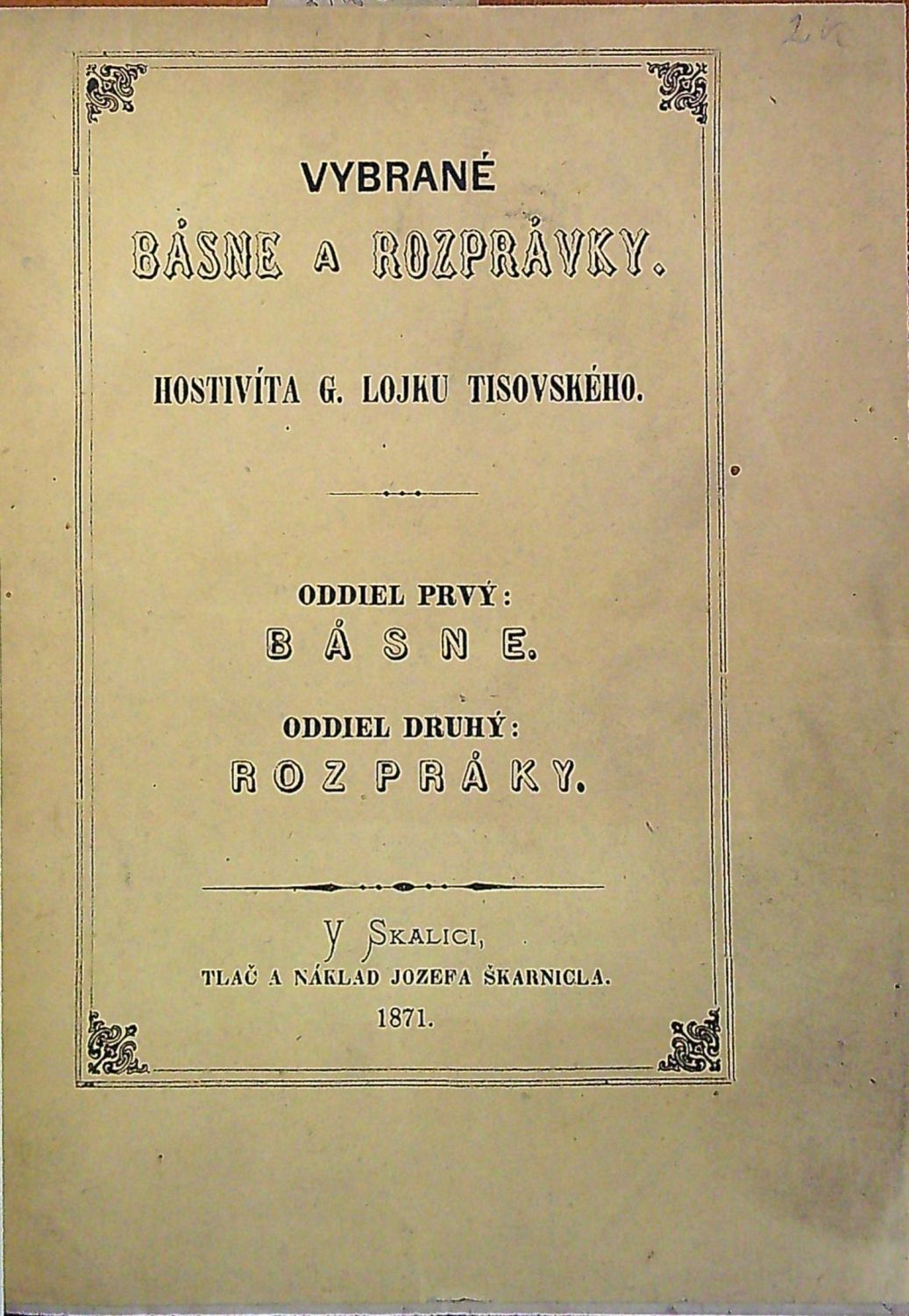 Vybrané básne a rozprávky. Oddiel prvý: Básne. Oddiel druhý: Rozprávky.