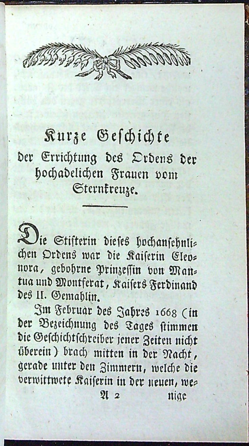Hochadeliche und gottselige Versammlung vom Sternkreuz gennant, welche von Ihro kaiserl. Majestät Eleonora röm. Kaiserin im Jahre 1668 errichtet worden ist. Beschrieben und herausgegeben auf Ihro k. k. apostol. Majestät allergnädigste Verordnung.