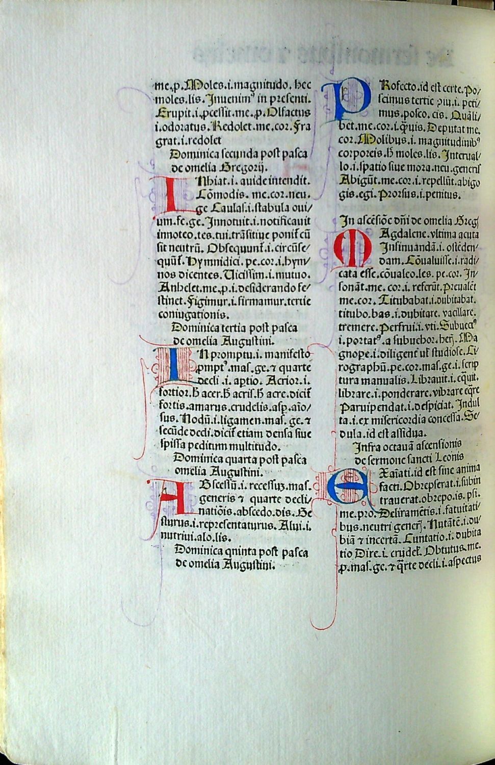 260 + 1 list (A10,B-C8;a-y8;1-6/8;7/10 + 1 list) prví a poslední list čistý. Tištěno rotundou ve 37 řádcích, dvousloupcový tisk, neživá záhlaví, signatury. Červeně a modře rubrikováno, v textu řada kreslených modrých a červených iniciál ve výši 3-5 řádků na červeném či světle fialovém podkladu a s různě dlouhými lehce načrtnutými prostorovými rozvilinami, na foliu a1 vícebarevná malovaná iniciála ve výši 9 řádků s akantovým korpusem písmene F olemovaná zlaceným rámem a doplněná o místy zlacenou vegetativní drolerii, na foliu a6 malovaná iniciála ve výši 6 řádků s akantovým korpusem písmene na zlaceném pozadí doplněná o zlacená sluníčka, na foliu p8 vícebarevná malovaná iniciála ve výši 7 řádků s akantovým korpusem písmena L olemovaná zlaceným rámem a doplněná o místy zlacenou drolerii. Impresum na rubu folia 7/9.