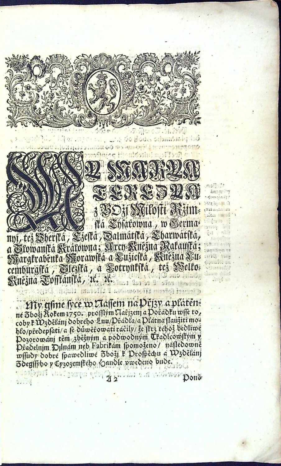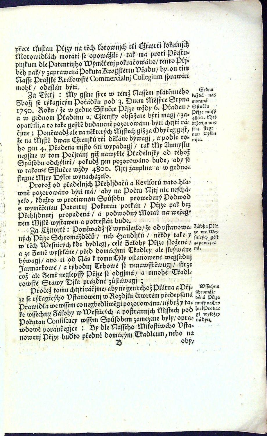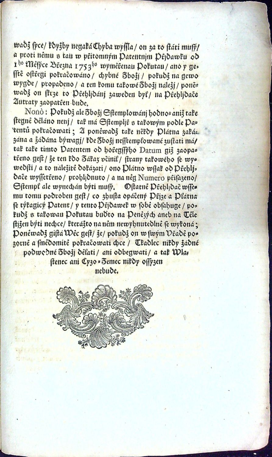 Přjdawek k Ržádu neb Vstanowenj strany Přjze a Plátna w Králowstwj Cžeském. Dne 1. Března 1753. Roku.